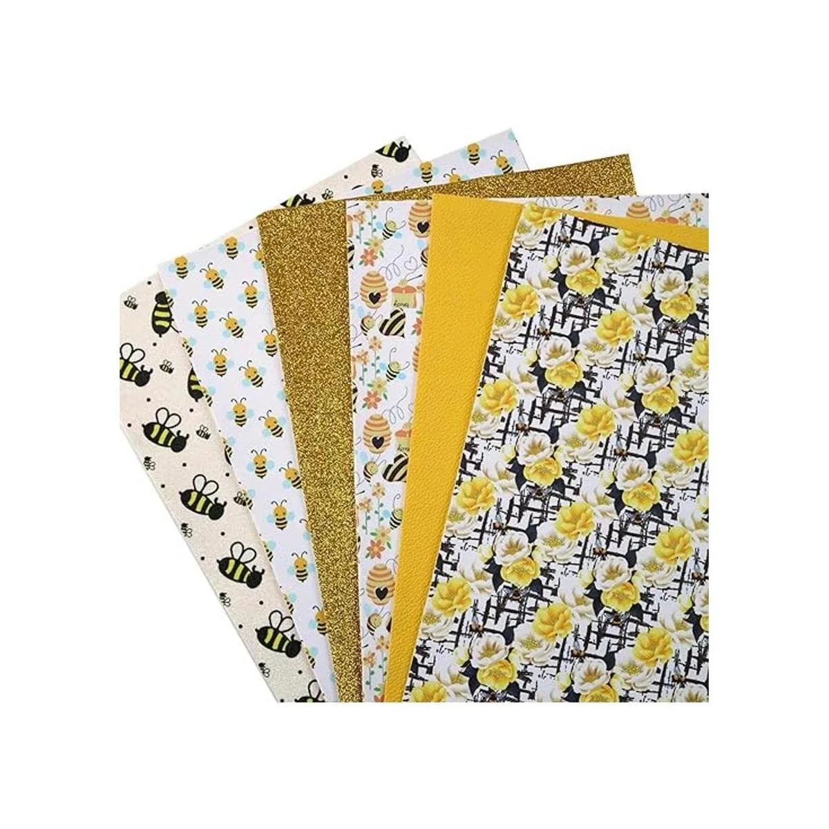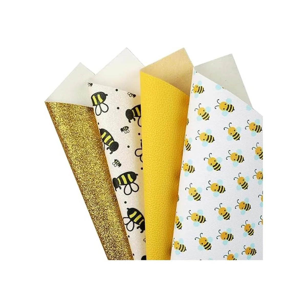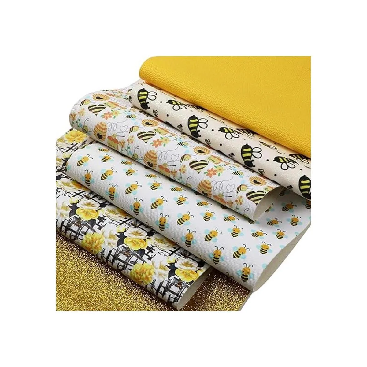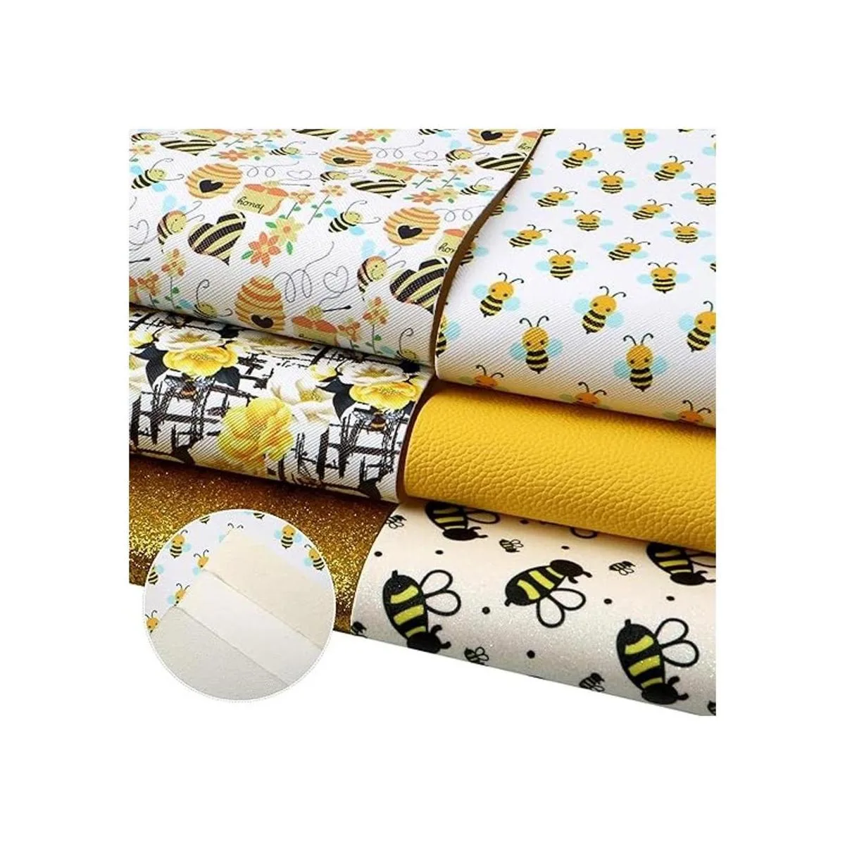 Tema de primavera Recibirás 3 hojas de cuero con estampado floral de abeja; 1 hoja de cuero fino con purpurina de color sólido, 1 tela de cuero texturizado de grano y 1 hoja de piel impresa con purpurina, ideal para tus manualidades de piel de primavera