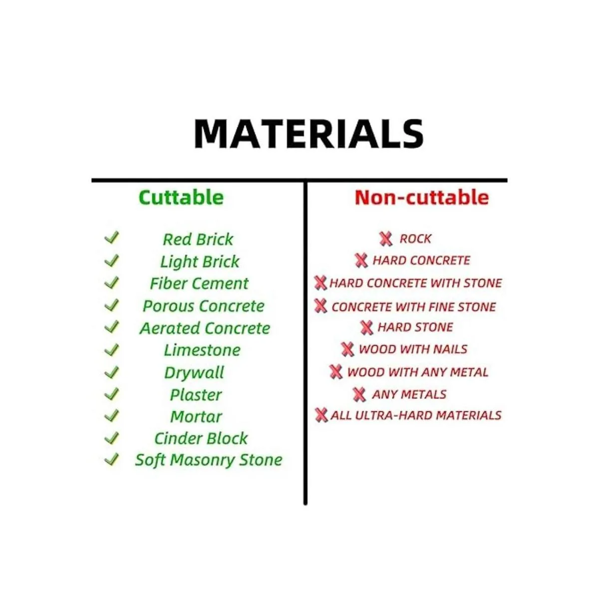 No cortar Por favor, no cortes hormigón duro con piedra, hormigón duro, hormigón con piedra fina, piedra dura, roca, madera con uñas, madera con cualquier metal, cualquier metal y todos los materiales ultra duros