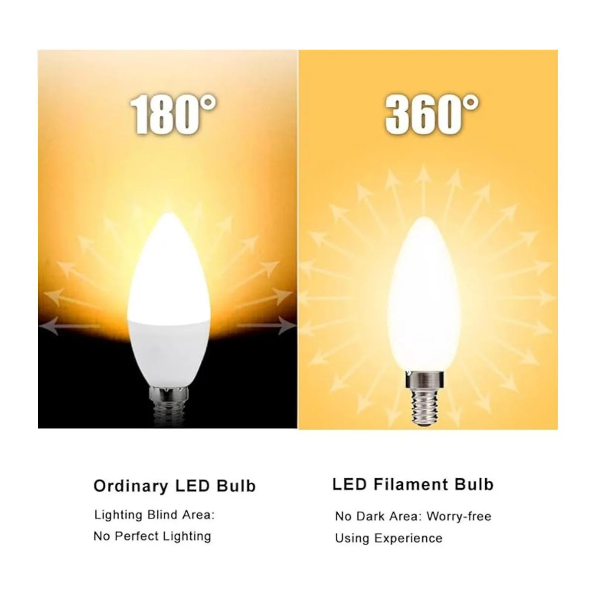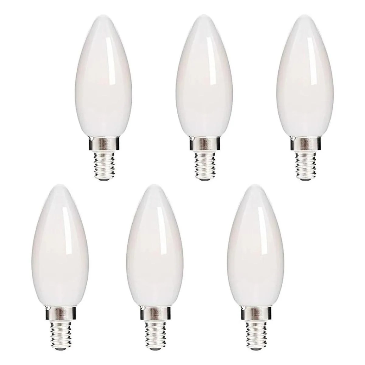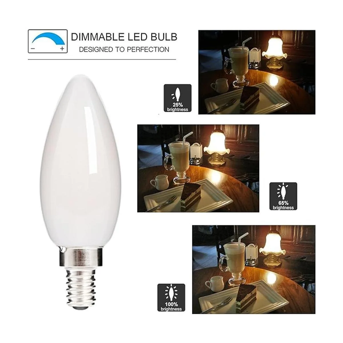 HOLA Bombilla LED de candelabro, equivalente a 40 W, bombilla LED regulable, base E12, bombilla de filamento LED blanco cálido de 2700 K, vidrio blanco leche, 4 W, 400 lúmenes, 360 ángulos de haz, paquete de 6