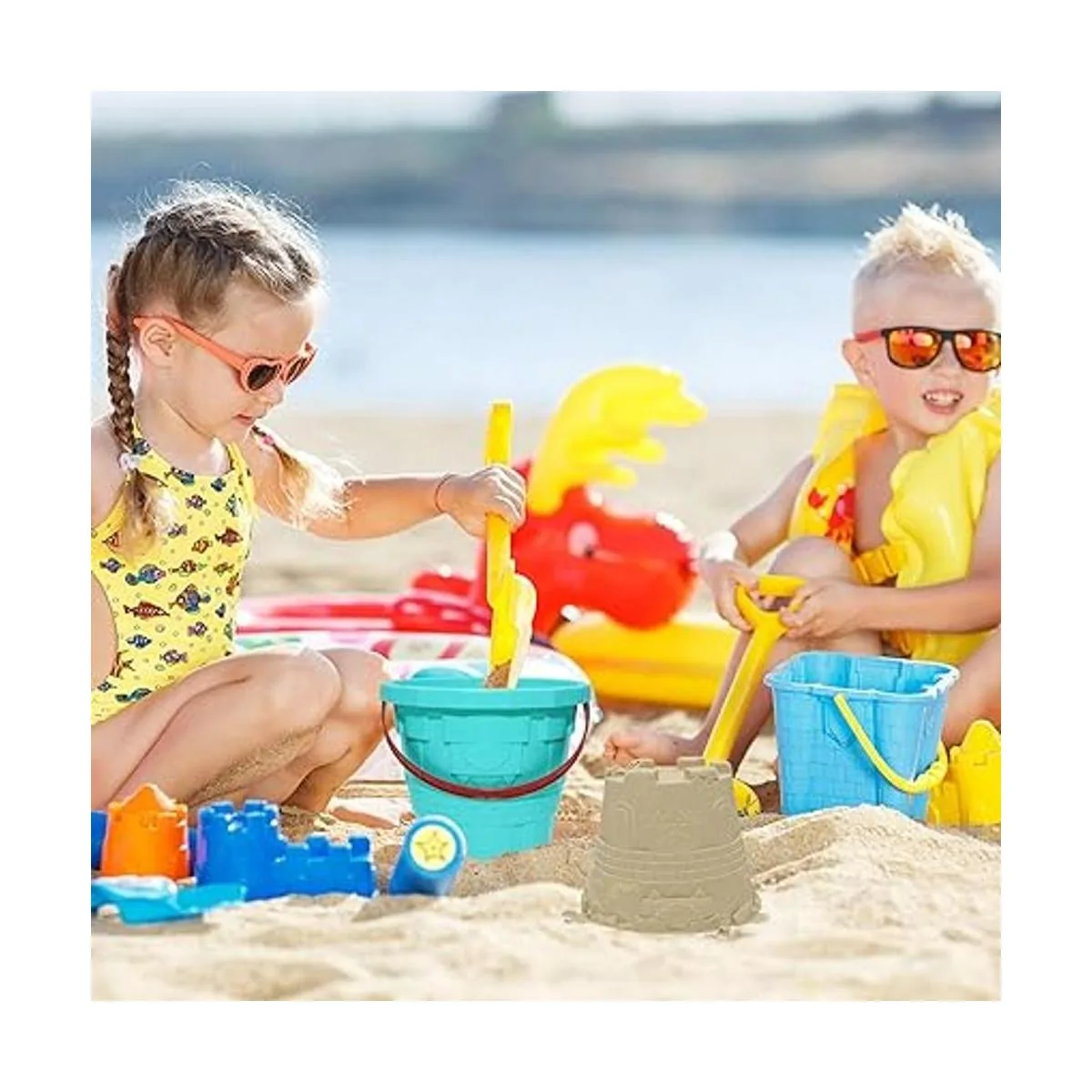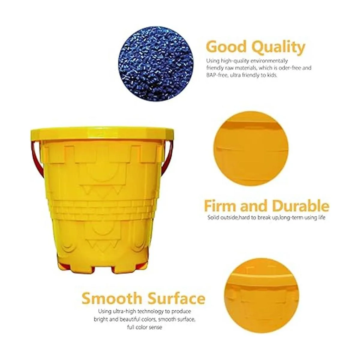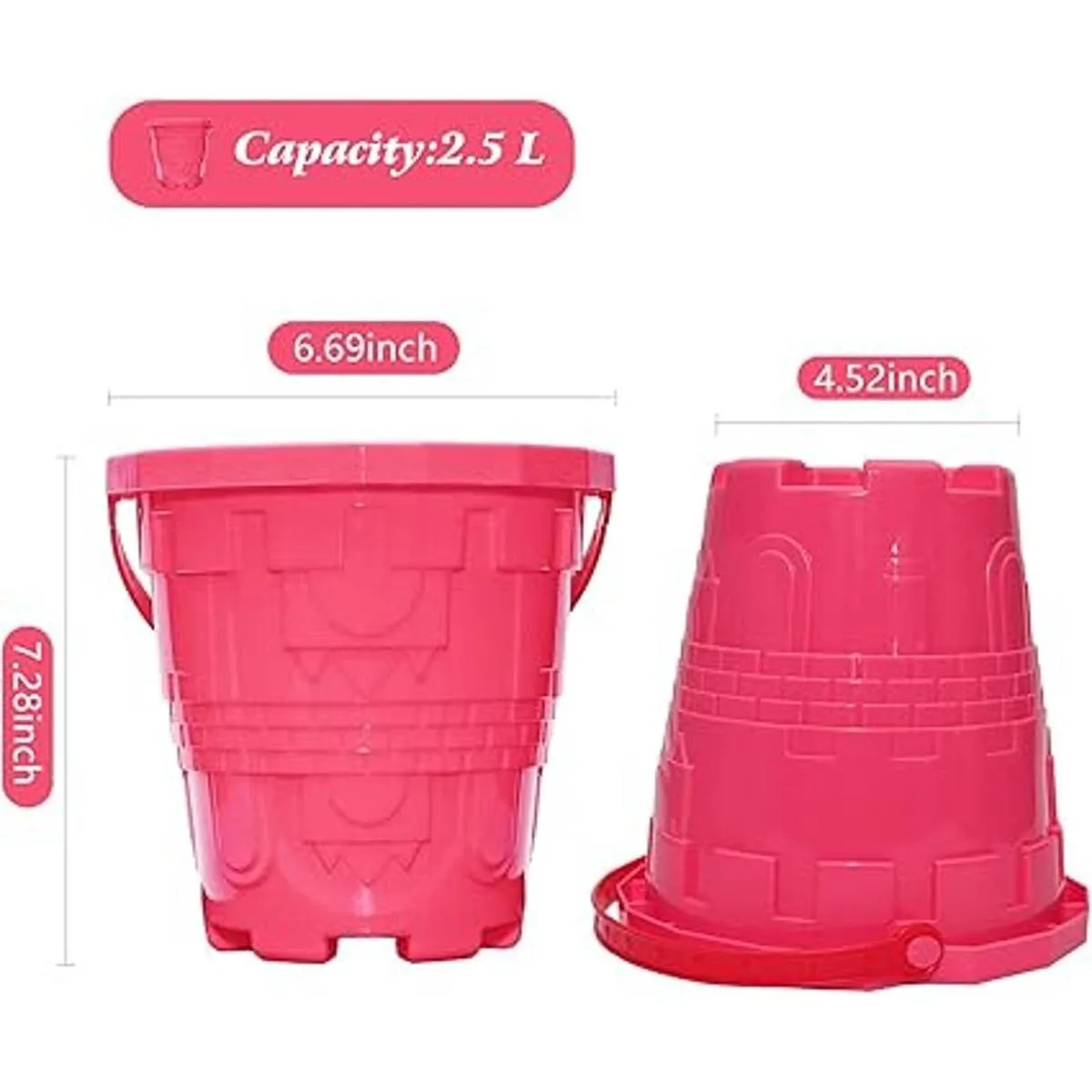 Holady Cubos de plástico para castillo de playa, cubo de arena de tamaño grande de 7.3 pulgadas, para diversión en la playa, gran accesorio de fiesta de verano