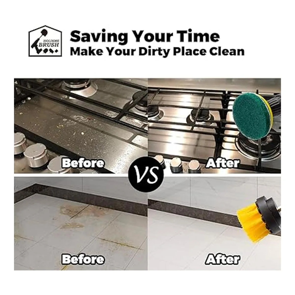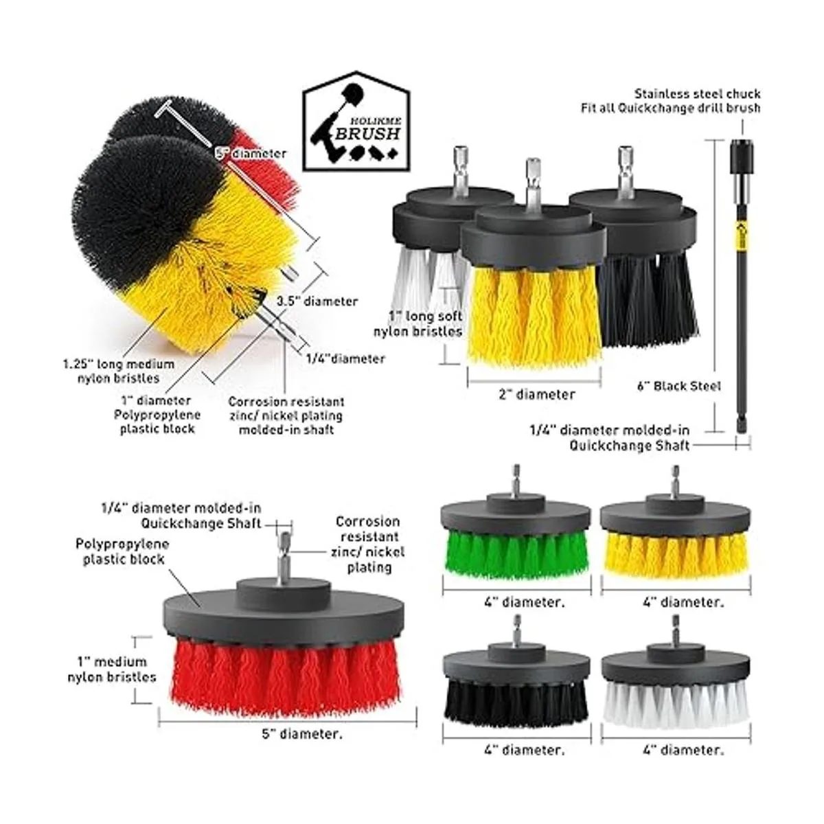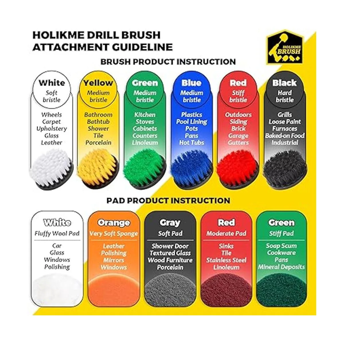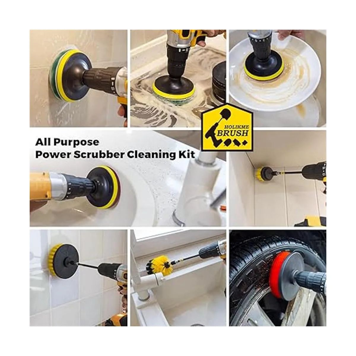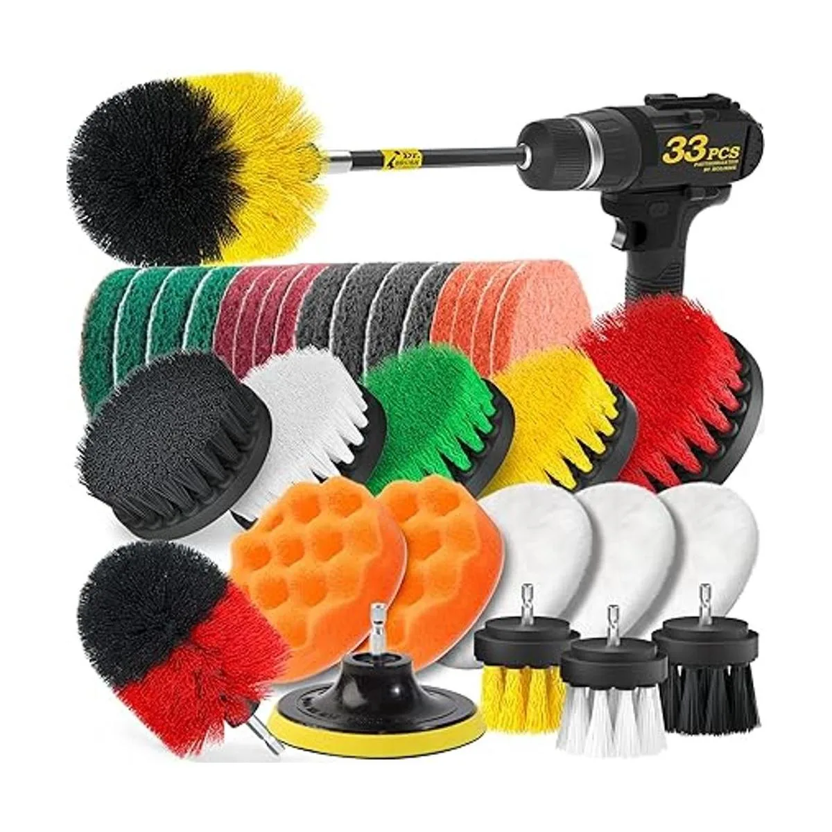Holikme Juego de 33 piezas de accesorios de cepillo de taladro, esponja de almohadillas para exfoliar, cepillo eléctrico con accesorio de rotación extensible, limpieza multiusos para lechada, azulejos, fregaderos, bañera, baño, automóvil de cocina