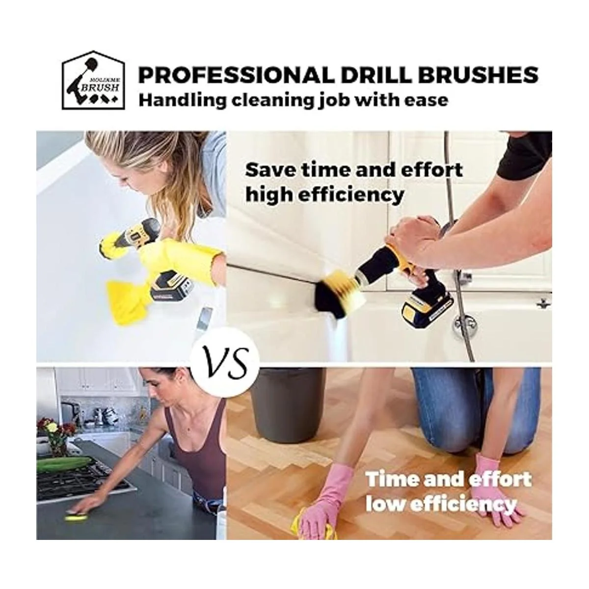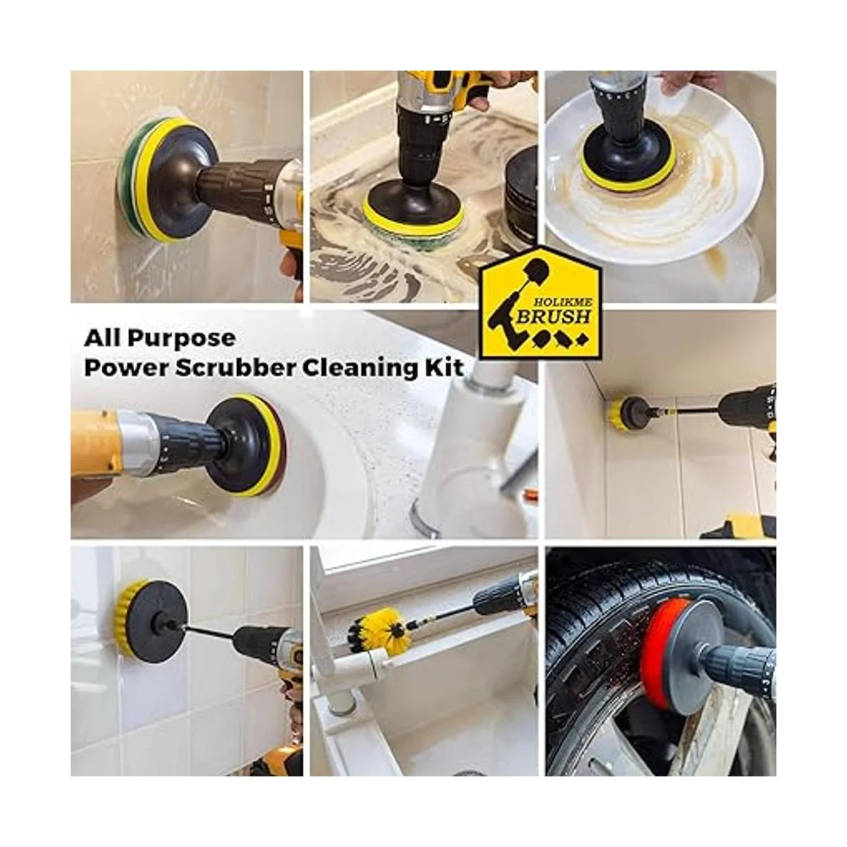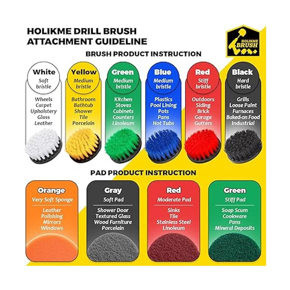 Holikme Juego de 45 piezas de cepillo de taladro para fregar, almohadillas para fregar, cepillo de limpieza eléctrico con extensión de fijación larga, multiusos para lechada, azulejos, fregaderos, bañera, baño, cocina