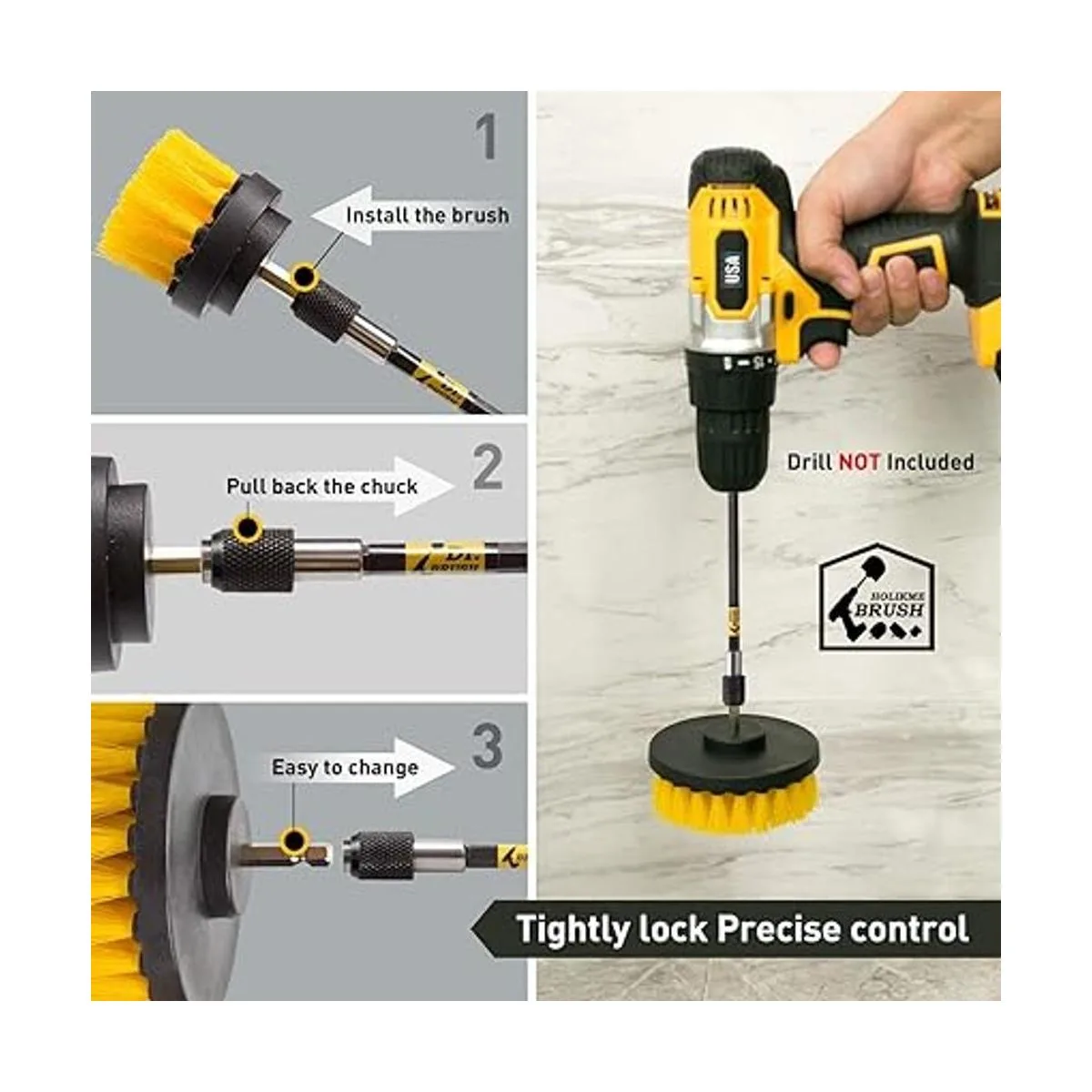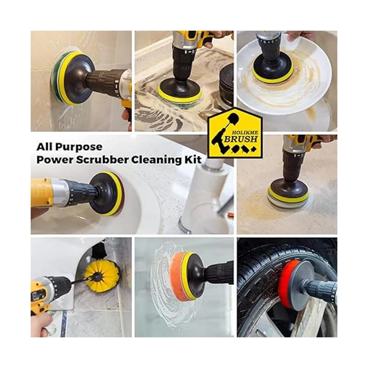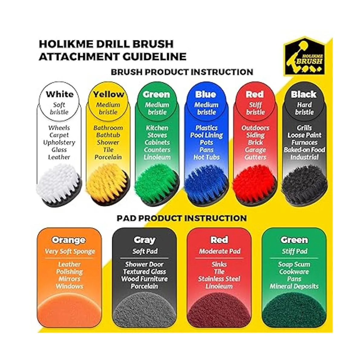 Ahorro de tiempo: cansado de la limpieza aburrida del hogar Prueba los cepillos de limpieza Holikme Power Scrubbing Drill Brush y estropajo que se fijan a cualquier taladro inalámbrico o atornillador de impacto, conviértete en una potente herramienta de limpieza. Haz trabajos de limpieza difíciles más rápido y logra una limpieza más profunda, definitivamente un buen compañero para la limpieza de tu hogar. El toldo no está incluido.