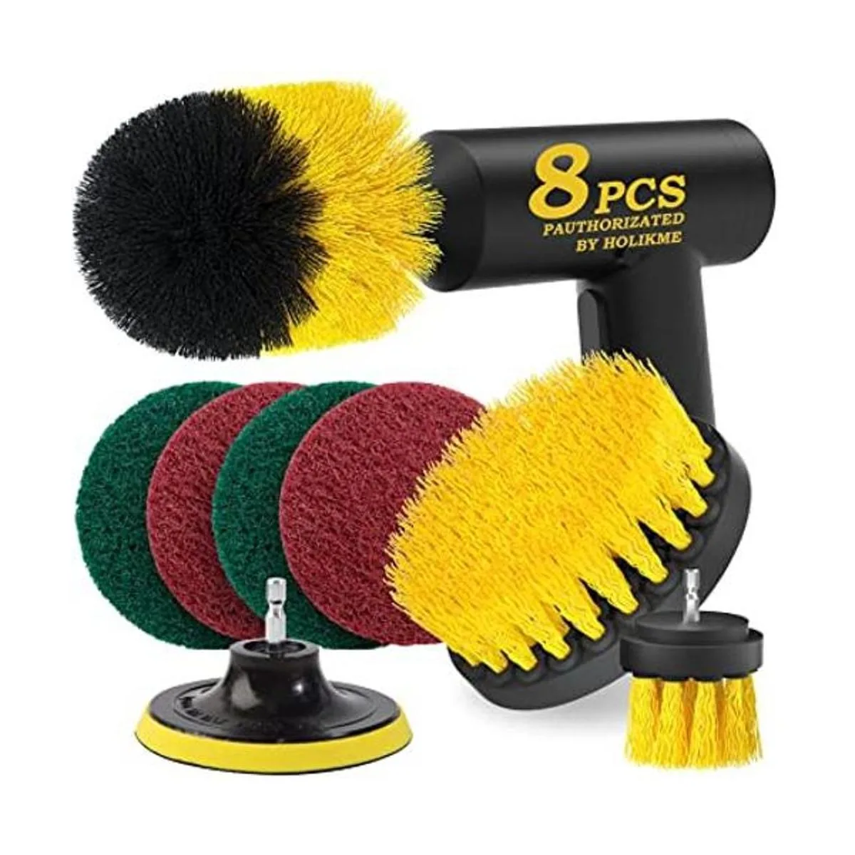 Holikme Juego de 8 cepillos de taladro para cepillo de limpieza para fregar, cepillo de fregado, kit de limpieza, limpiador multiusos para superficies de baño, lechada, piso, bañera, ducha, azulejos, esquinas