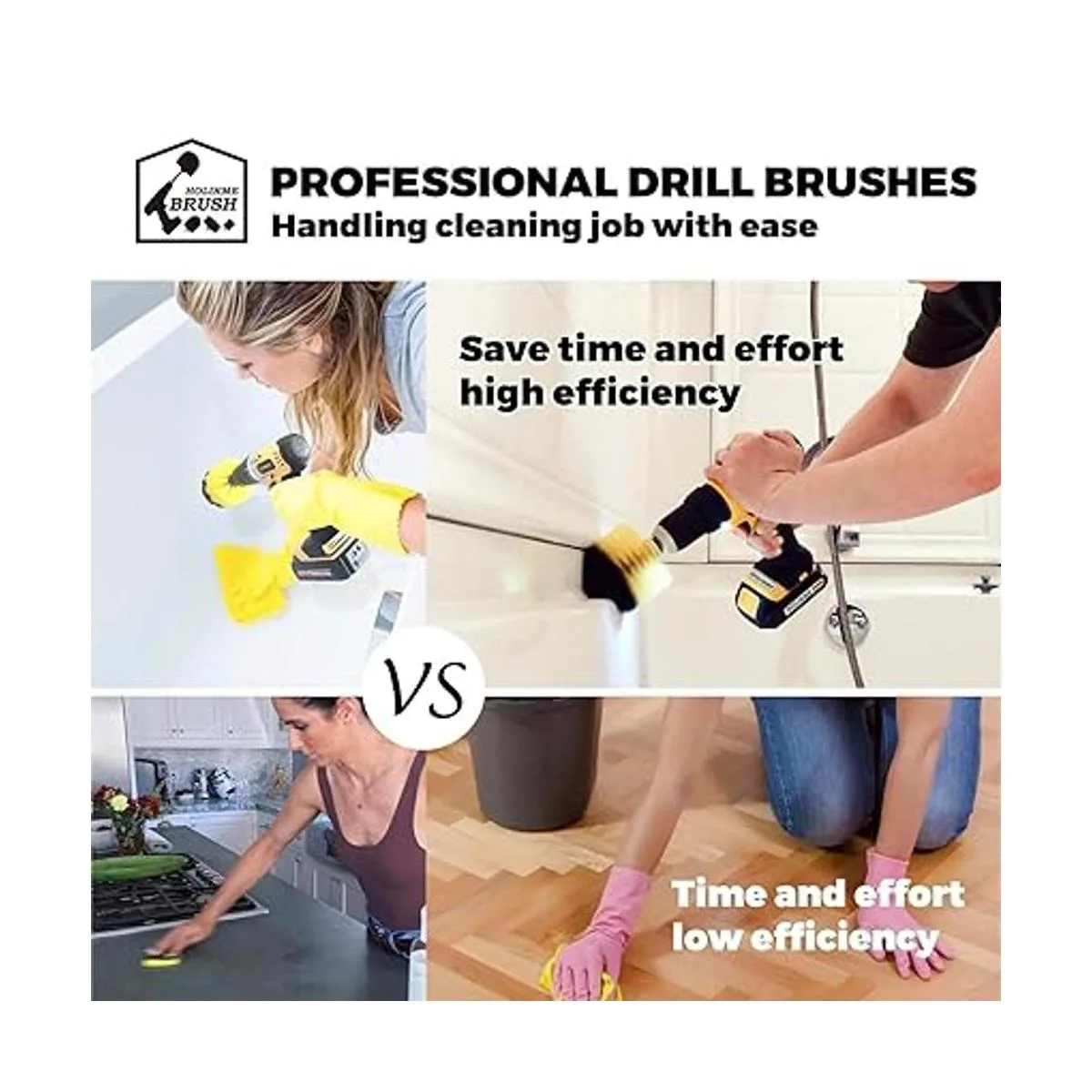 El mejor juego de limpieza de taladros cepillo y almohadillas de estropajo, incluye: 3 formas de cepillos de estropajo de tamaño mediano, 2 almohadillas de rigidez diferentes y respaldo de 3.9 in.