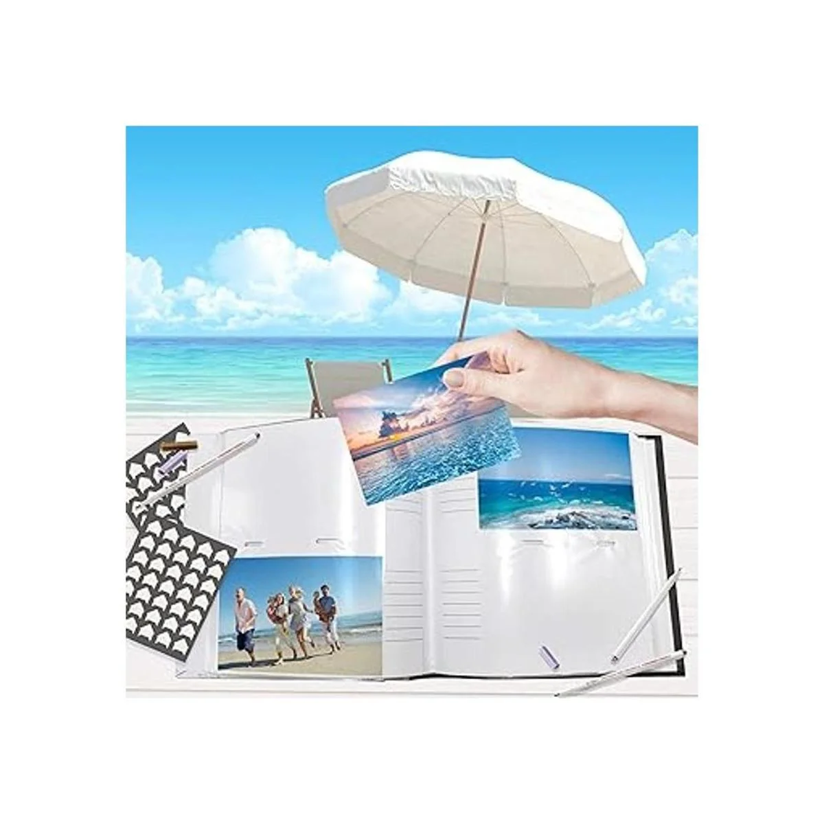 Diseño: cubierta de libro impresa en color blanco y negro, diseño de playa natural con estampado dorado, bolsillo de polipropileno transparente para fotos horizontales o verticales, fácil de recoger tus maravillosos recuerdos de viaje.