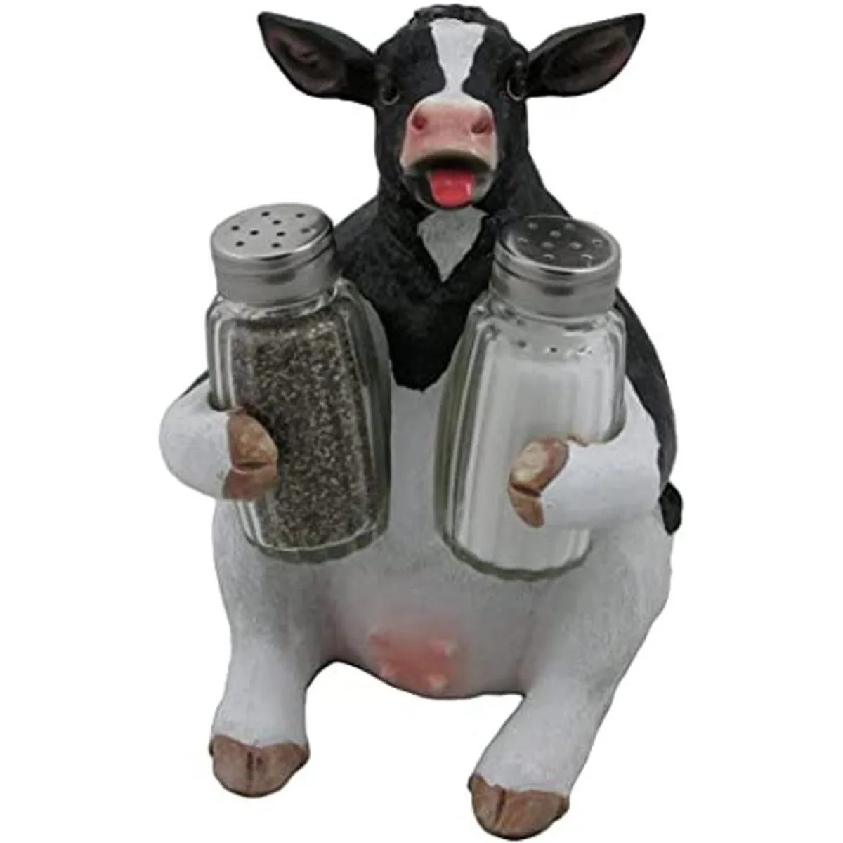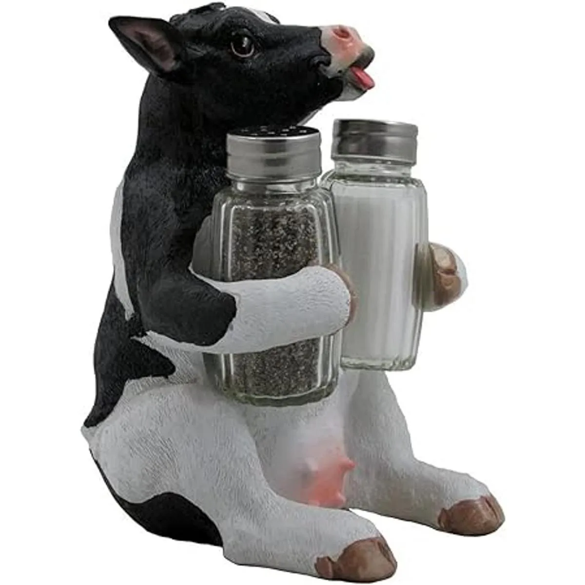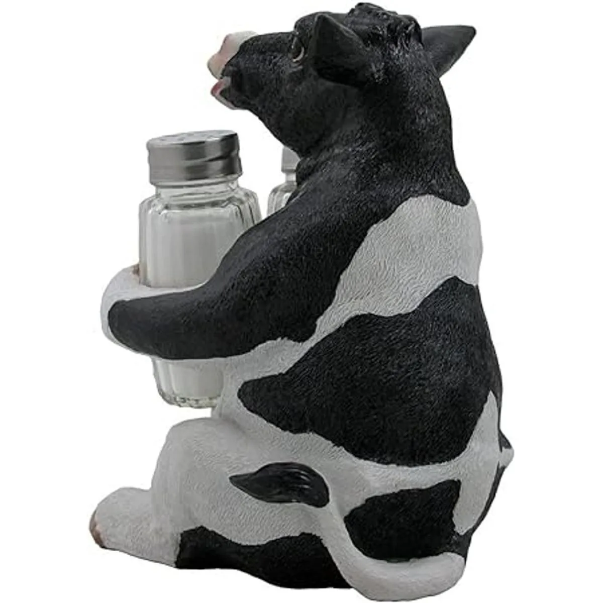 Holstein cow Juego de salero y pimentero con soporte Figura decorativa de vidrio en mesa País Cocina Decoración o decorativo coleccionable Esculturas de granja animal como especia estante y rústico Regalos para los agricultores por homengifts
