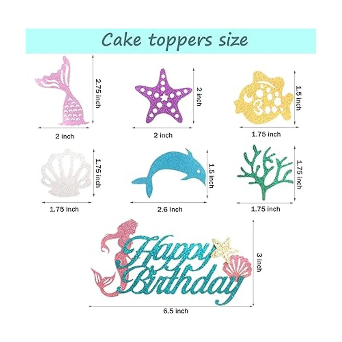 Hombae Decoración de cumpleaños de sirena, kit de suministros de decoración de fiesta de sirena, decoración de pastel de sirena, decoración de cumpleaños con temática de sirena, decoración de pastel de sirena con bonitos recortes