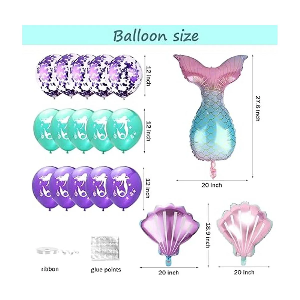Calidad prémium: la pancarta de sirena está hecha de 10.58 oz de cartón duro, impresión de alta calidad con detalles llamativos y colores realistas. Nuestros globos están hechos de látex natural de alta calidad, que es limpio, seguro y duradero.