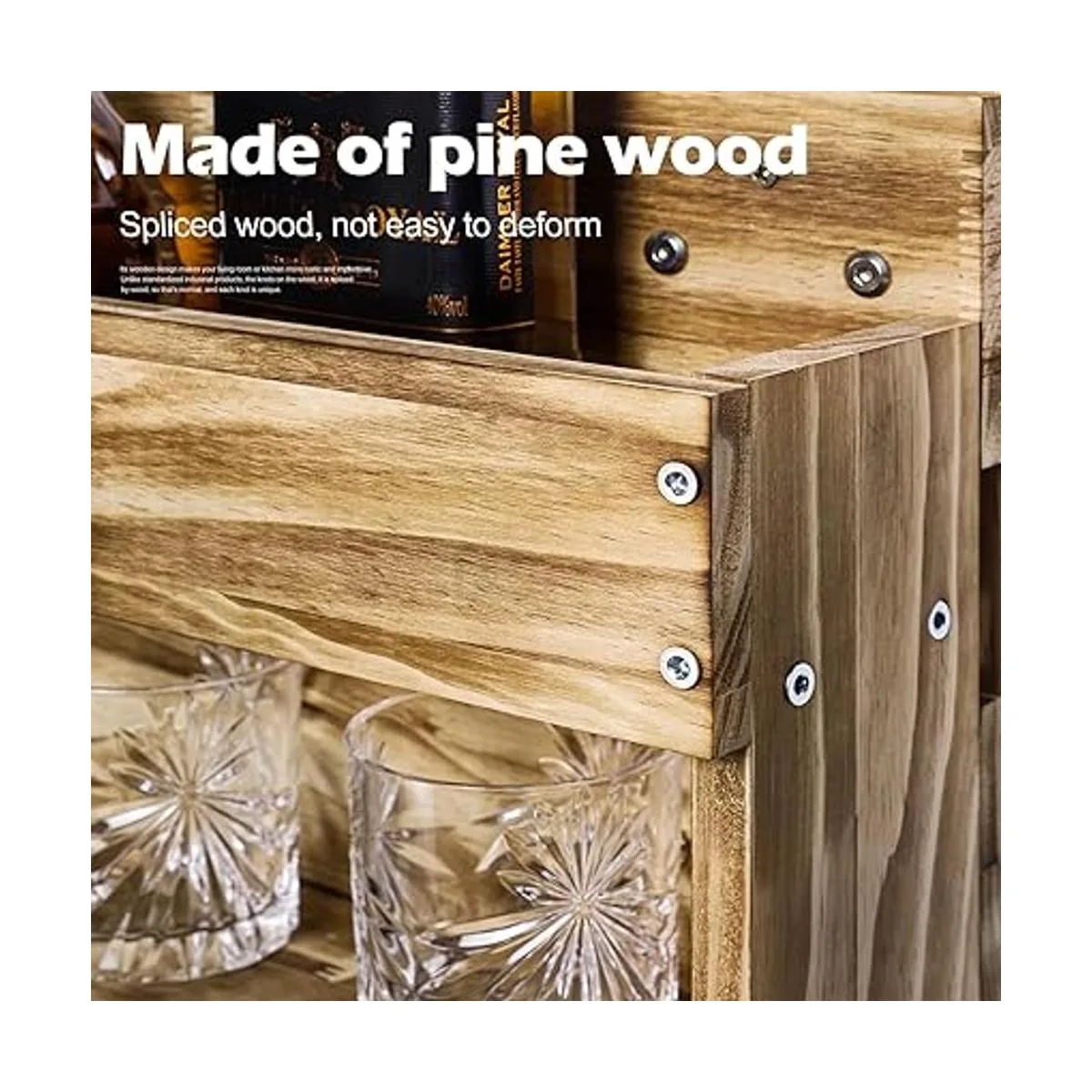 Estructura resistente: el marco de todo el estante de vino montado en la pared está hecho de madera de pino con un grosor de 0.591 in. A diferencia del uso de toda la madera maciza, este estante de vino utiliza madera empalmada. Debido al contenido de humedad, si se utiliza toda la madera maciza, se deforma fácilmente, por lo que utilizamos madera empalmada para hacer que el producto sea más fuerte y no se deforma fácilmente