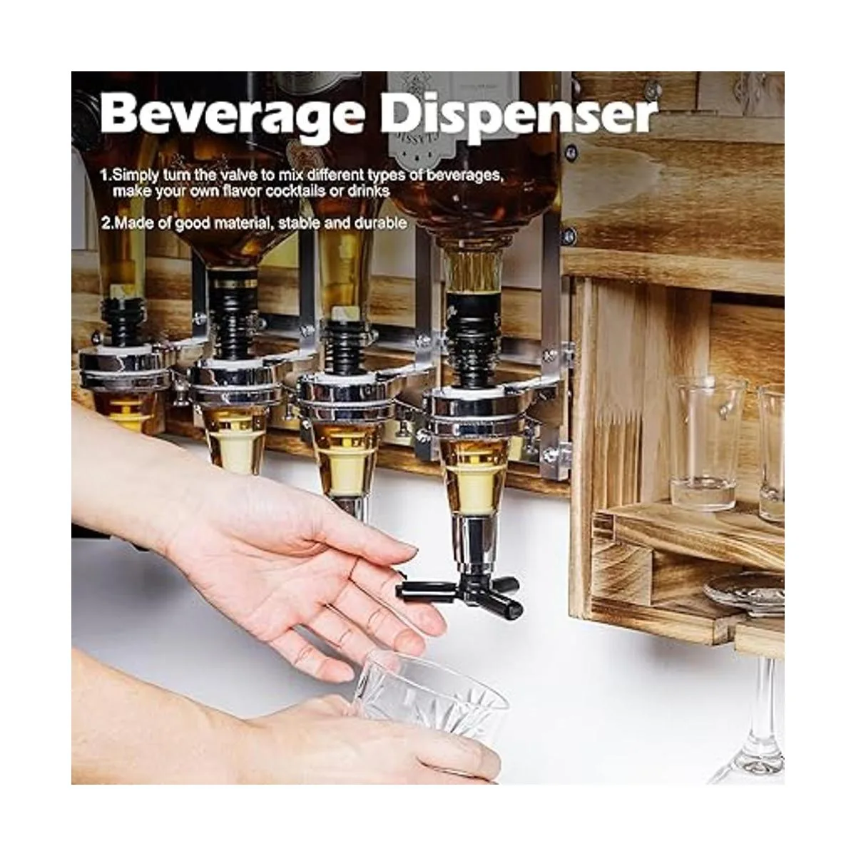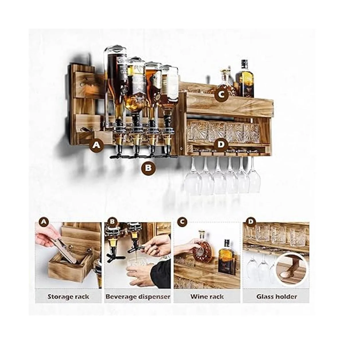 Dispensador de bebidas: el lado izquierdo del estante de vino montado en la pared está equipado con cuatro dispensadores de vino, adecuado para botellas estándar de 0,7 a 1 litros de ginebra, whisky, vino, ron, licor, etc. Con este minibar casero también puedes preparar fácilmente bebidas, cócteles y tiradores. Capacidad máxima de carga en el lado izquierdo de la zona dispensadora: 22 libras
