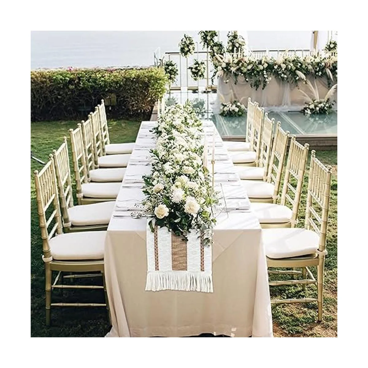 Material de alta calidad: nuestro camino de mesa de estilo granja está hecho de 100 algodón natural y arpillera, grueso, duradero, suave, natural, duradero y reutilizable. Camino de mesa beige blanco ideal para decoraciones bohemias de mesa de boda para la recepción.
