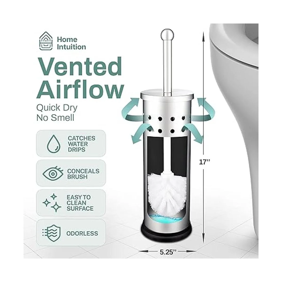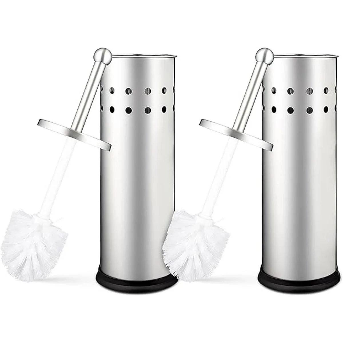 Home Intuition Moderno juego de escobillas y soporte de acero inoxidable cepillado, limpiador de baño con soporte, paquete de 2