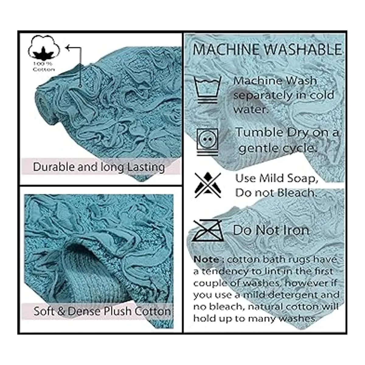 Fabricado a máquina con 100 algodón y tejido a la perfección para una máxima durabilidad, la calidad está diseñada para durar para el uso diario. Alta densidad, felpa y altura del pelo de aproximadamente 0.35 pulgadas; hace que nuestra alfombra de baño sea suave, esponjosa y alivia la presión y la fatiga de tus pies y los protege de suelos fríos. Capacidad extra absorbente que mantiene los suelos de tu baño ducha, fregaderos, bañeras secos. Estas alfombras atrapan y absorben el exceso de agua y humedad.