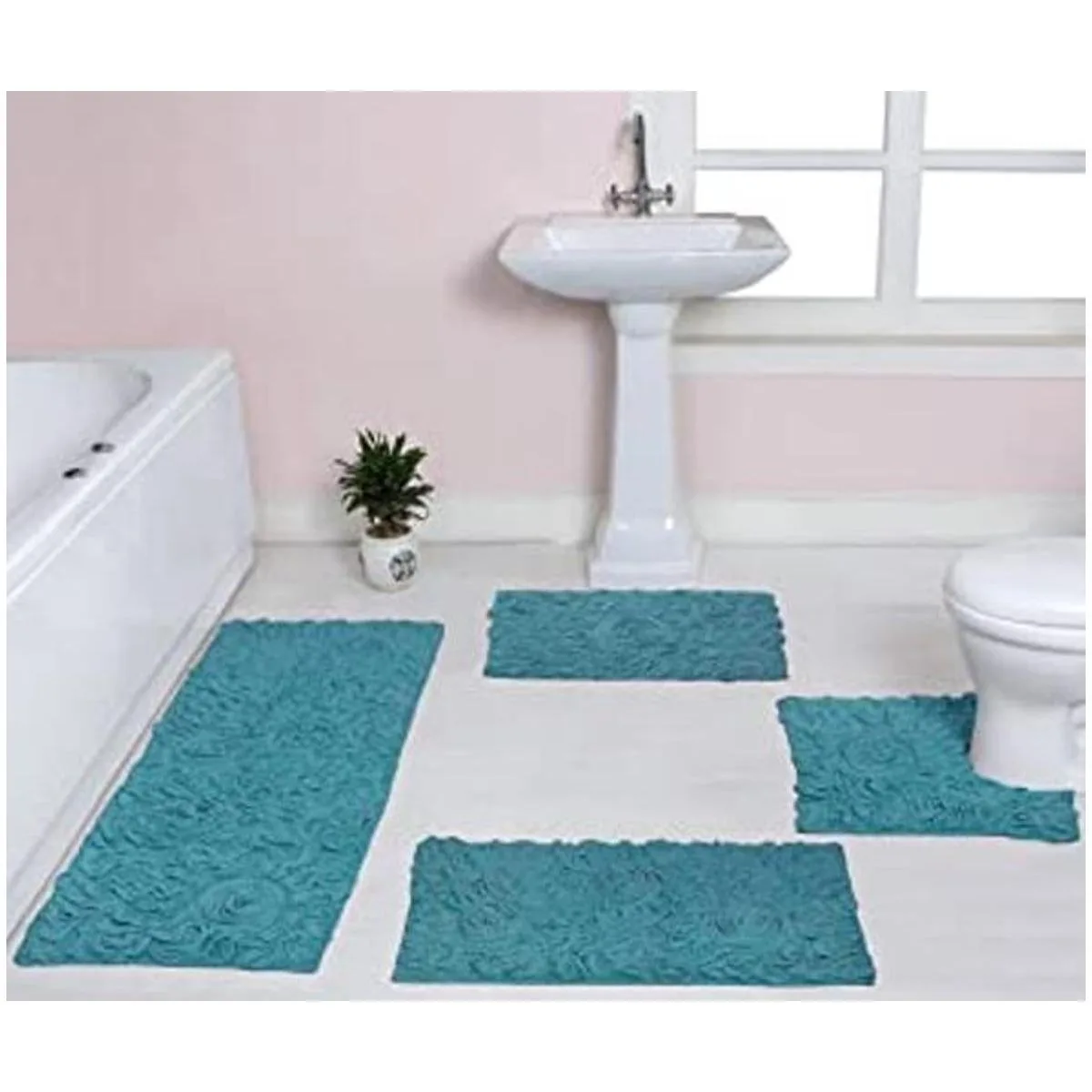 Hecho de 100 algodón, la calidad está diseñada para durar para el uso diario. Alta densidad, la felpa hace que nuestra alfombra de baño sea suave, esponjosa y alivia la presión de tus pies y atrapa y absorbe eficazmente el exceso de agua y humedad, juego de 4 piezas, azul