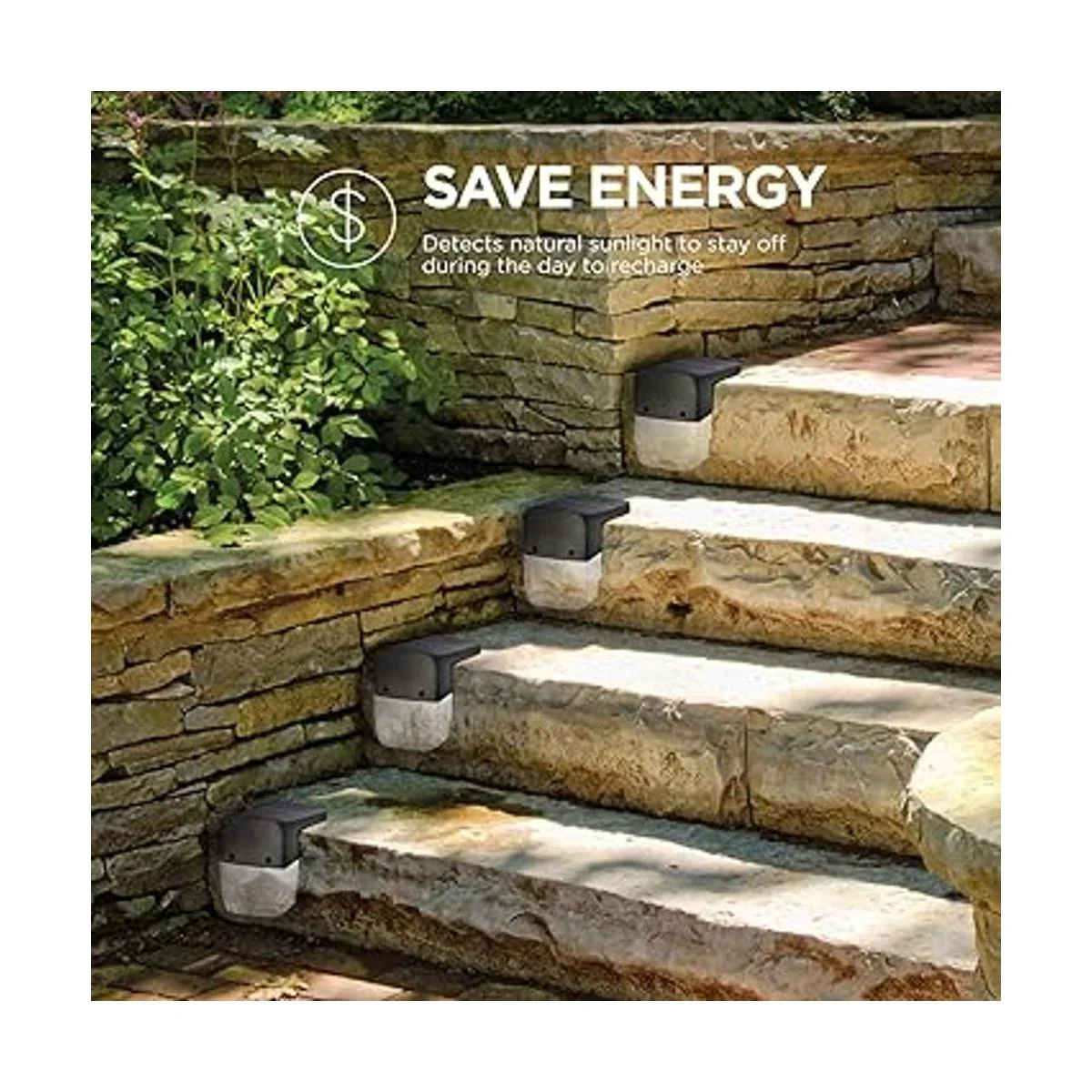 Alimentado por energía solar: deja que el sol haga el trabajo con escaleras solares para exteriores y luces de paso de Home Zone Security con luces LED ultra brillantes recargables por paneles solares cristalinos avanzados para proporcionar mayor seguridad y visibilidad alrededor de tu hogar por la noche