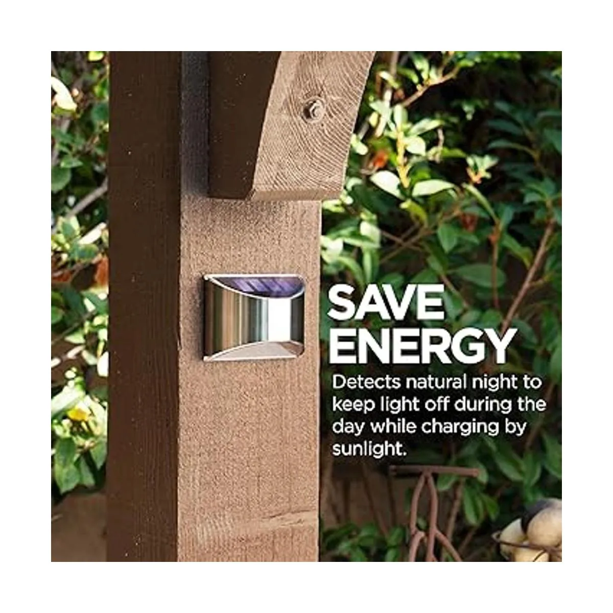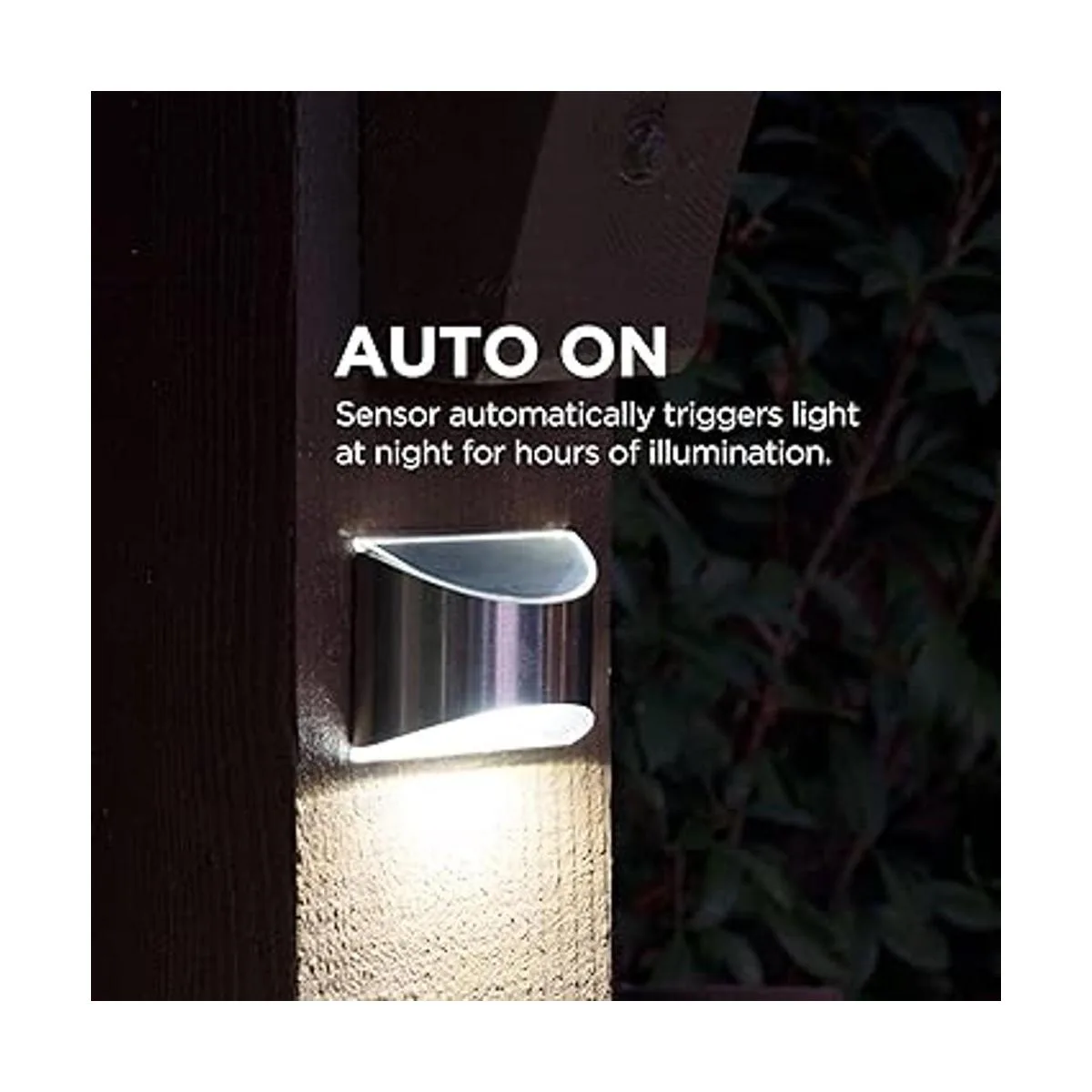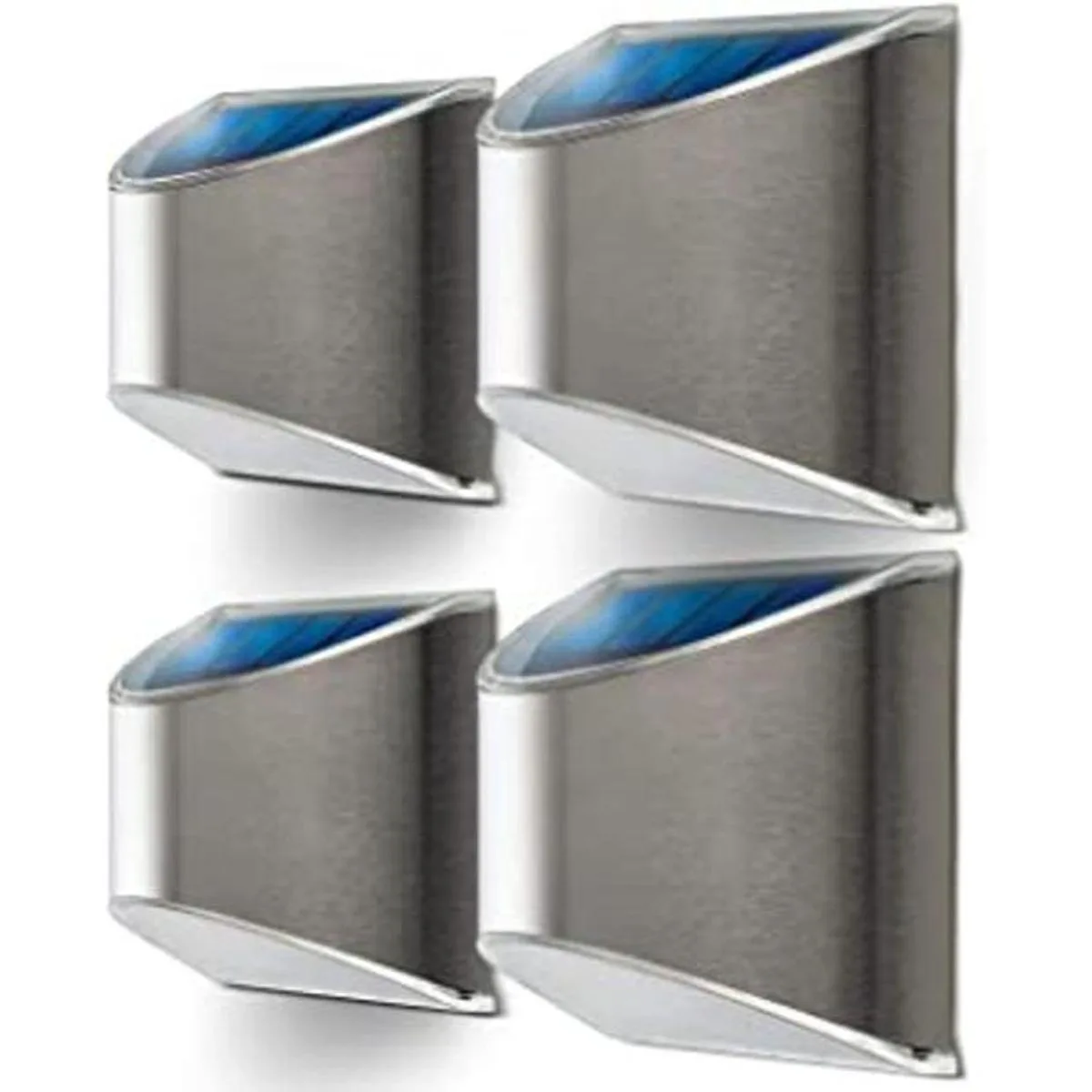 Home Zone Luces solares de seguridad para pared, poste de cerca solar y luces de escalón, resistentes a la intemperie sin necesidad de cableado, acero inoxidable paquete de 4