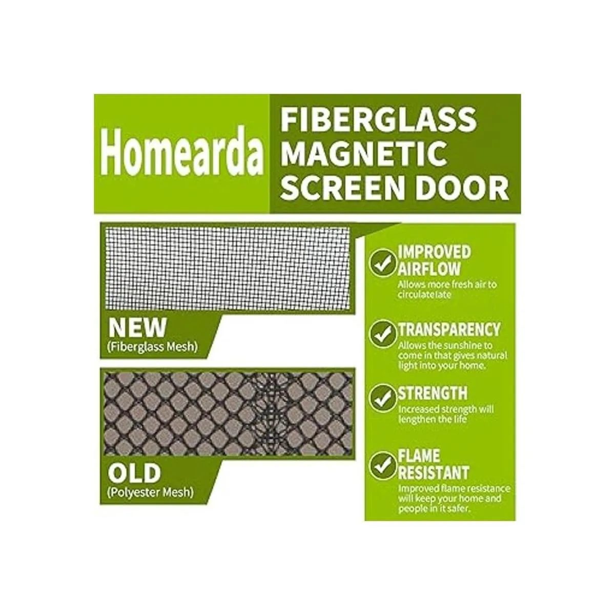 Homearda Mosquitero magnético de fibra de vidrio para puerta, nueva versión con mejores imanes, parte superior reforzada que no se rasga y duradero lienzo de malla de fibra de vidrio con peso en la parte inferior, marco completo con sello mágico, se adapta a puertas de hasta 34 x 82 pulgadas