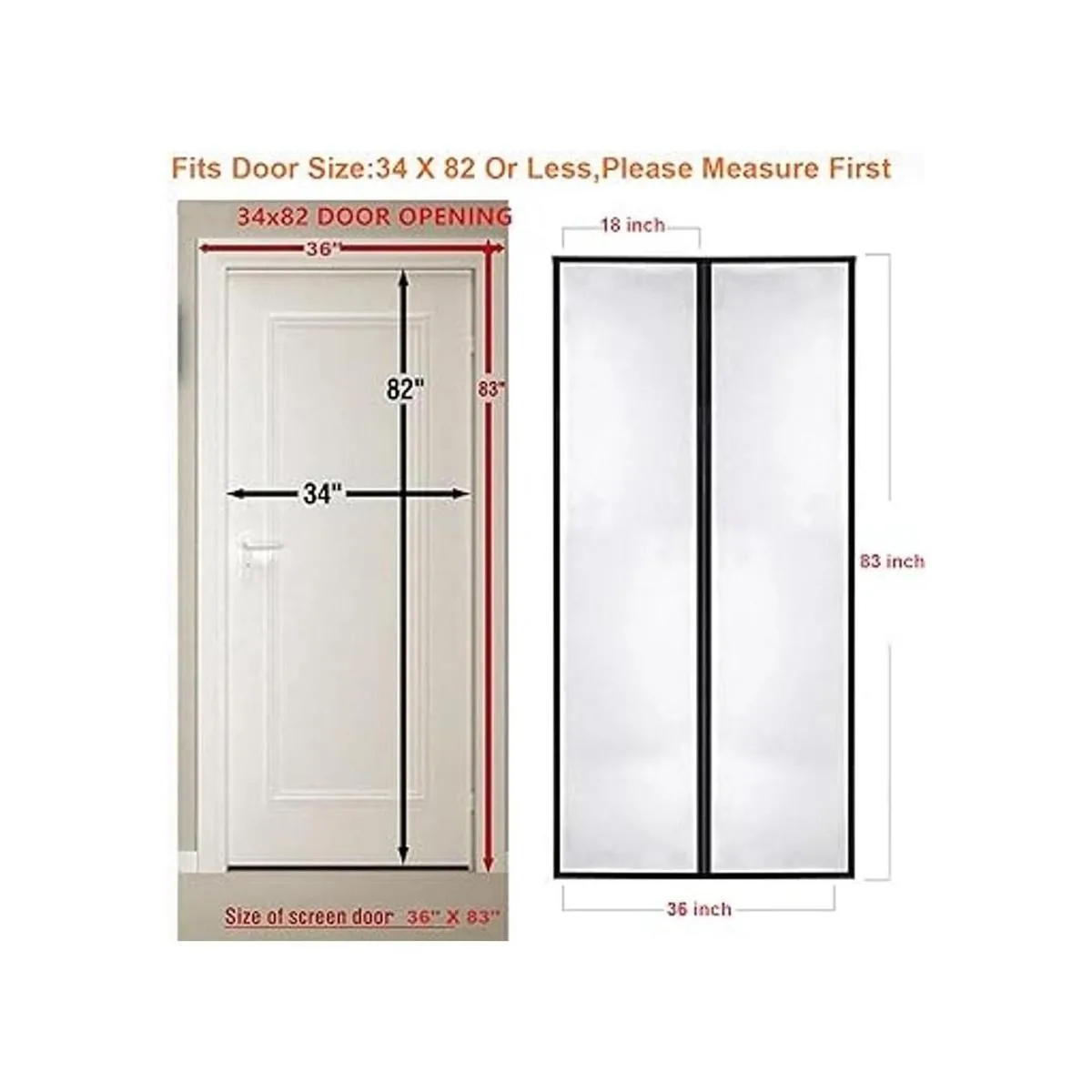 Las medidas del mosquitero magnético para puerta son de 36 x 83 pulgadas y se adapta a puertas de hasta 34 x 82 pulgadas por ejemplo, 34 x 80 pulgadas, 34 x 81 pulgadas, 34 x 82 pulgadas. Por favor, mide tu puerta antes de realizar el pedido. Malla de fibra de vidrio duradera, imanes mejorados y parte superior reforzada nunca se rasga, es fuerte y duradero.