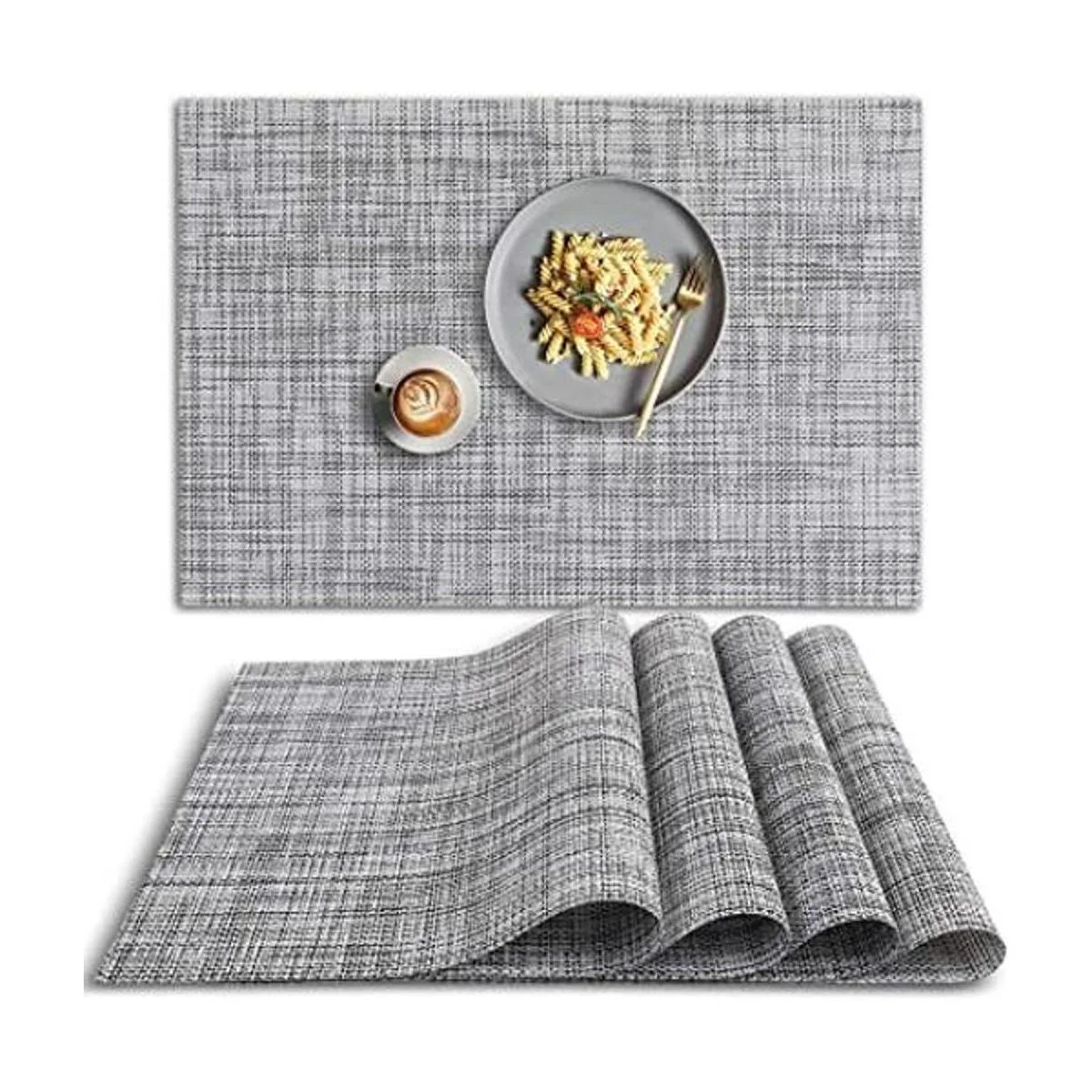 homEdge Mantel individual de PVC, 4 alfombrillas antideslizantes resistentes al calor, manteles individuales de vinilo lavable, juego de 4 unidades, color gris