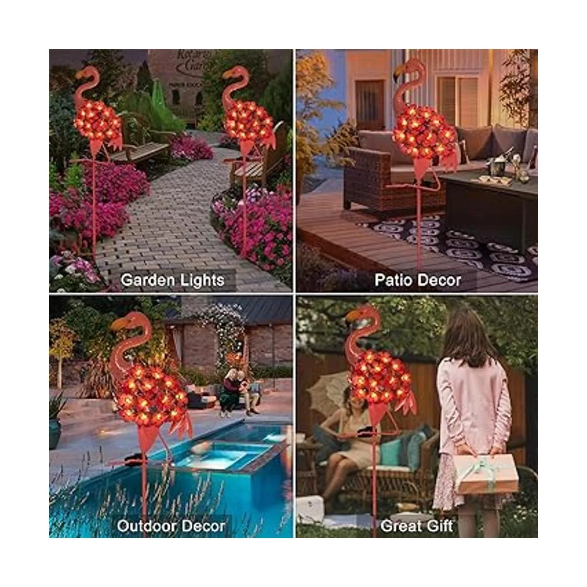 Homeimpro Luces solares de jardín, luces de metal para estaca de flamenco, camino de flamenco, impermeable, LED blanco cálido para césped, patio o patio