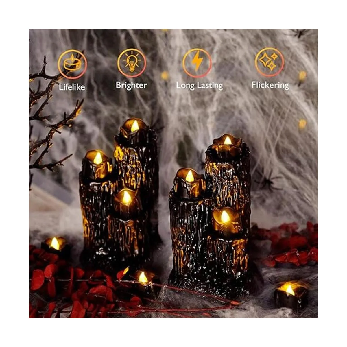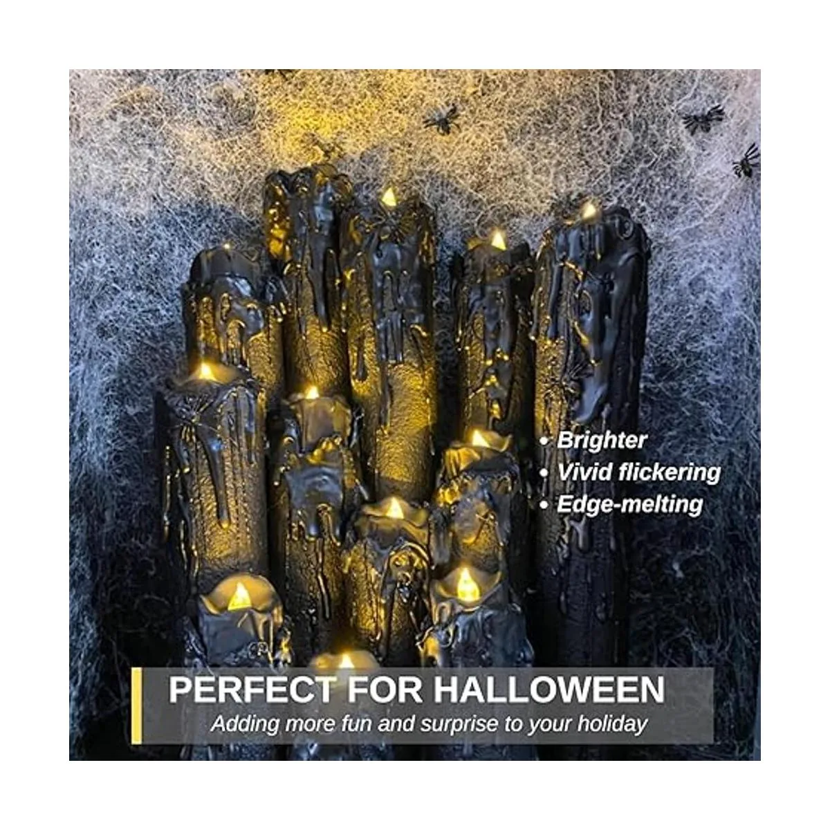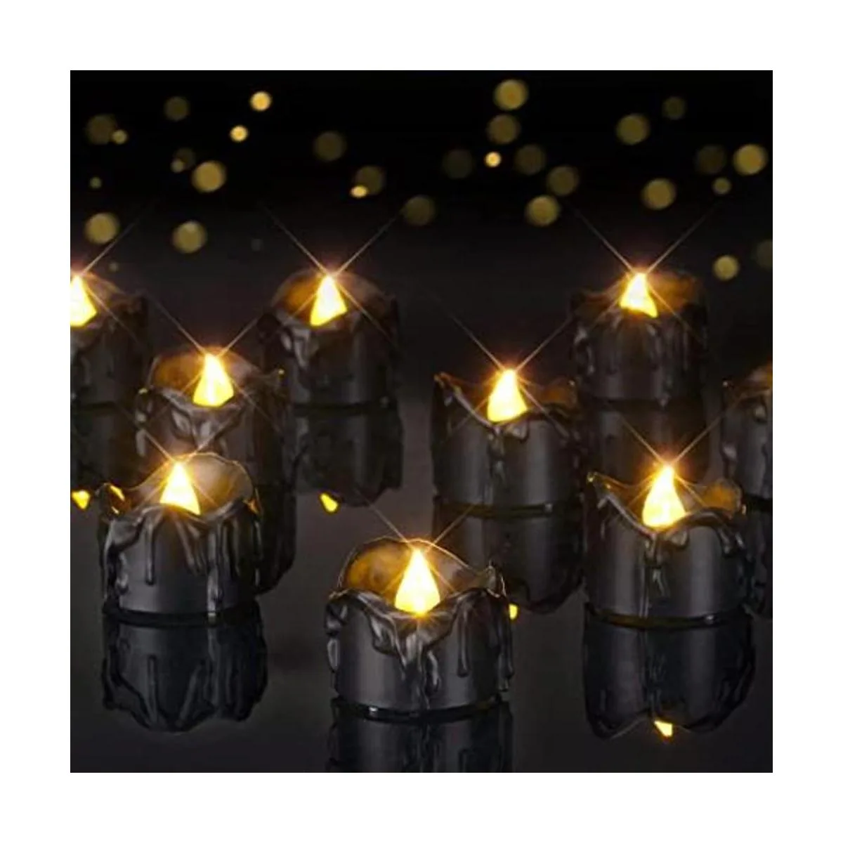 Homemory Paquete de 24 velas negras derretidas que funcionan con pilas, velas de té de Halloween, velas de luz de té, velas negras parpadeantes sin llama, ideal para decoración de vacaciones, fiestas temáticas, diámetro de 125 pulgadas x 114 pulgadas de alto