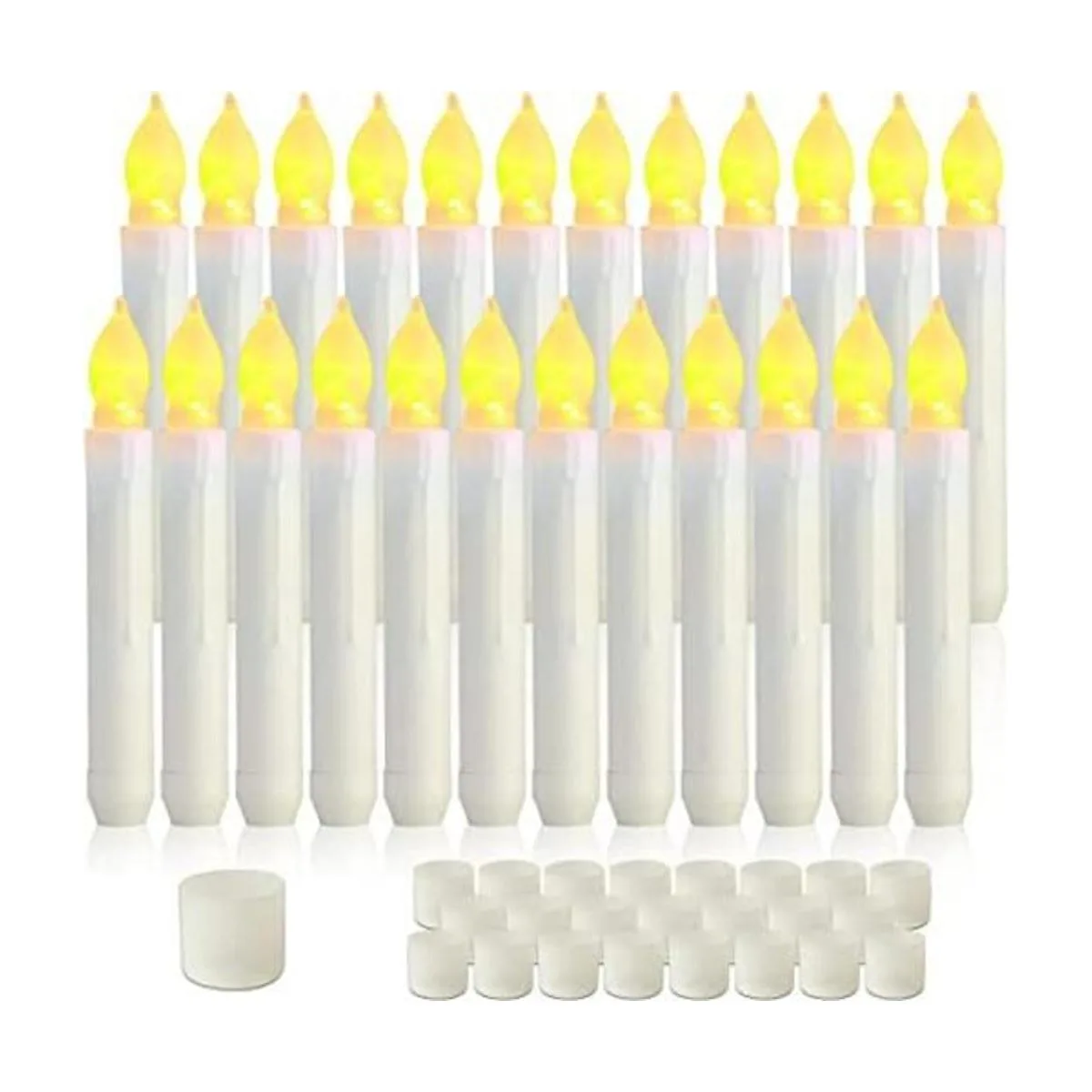 Paquete económico: el paquete incluye 24 velas cónicas sin llama, tamaño de 0.8 x 6.5 pulgadas, que se pueden utilizar en cualquier lugar para añadir un ambiente cálido y romántico. Cada vela parpadea luz amarilla cálida por LED, que no solo puede aumentar la vida útil de la vela, sino que también mantiene la vida útil de la batería