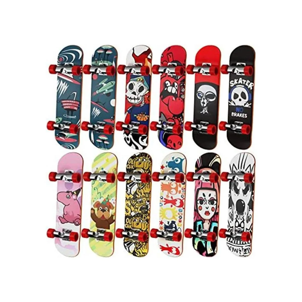 HOMETALL Juego de 12 monopatines de dedo para niños, mini diapasones de patineta de 12 piezas, paquete de juguetes para dedos, regalos para niños y niños