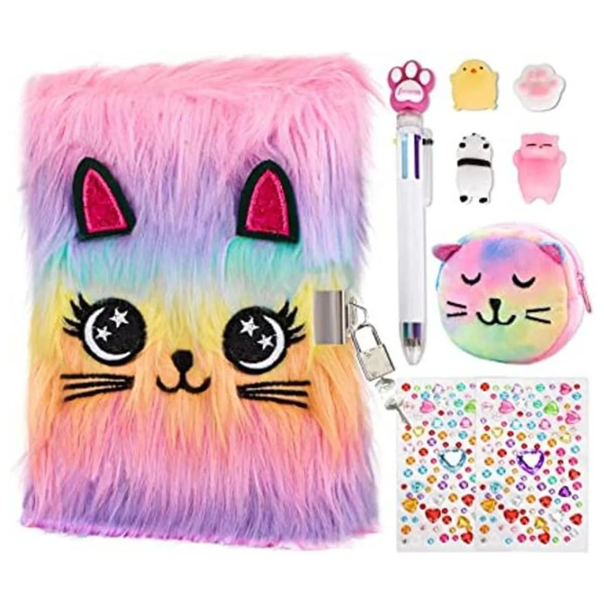 Bonitos regalos para niñas a partir de 6 años. Este bonito diario adopta personajes de gato y cinco colores vibrantes a juego. Escribir y dibujar nunca ha sido tan divertido cuando tu niña tiene un diario súper esponjoso. Se convertirá en un regalo ideal para cualquier niño que ama escribir y dibujar.