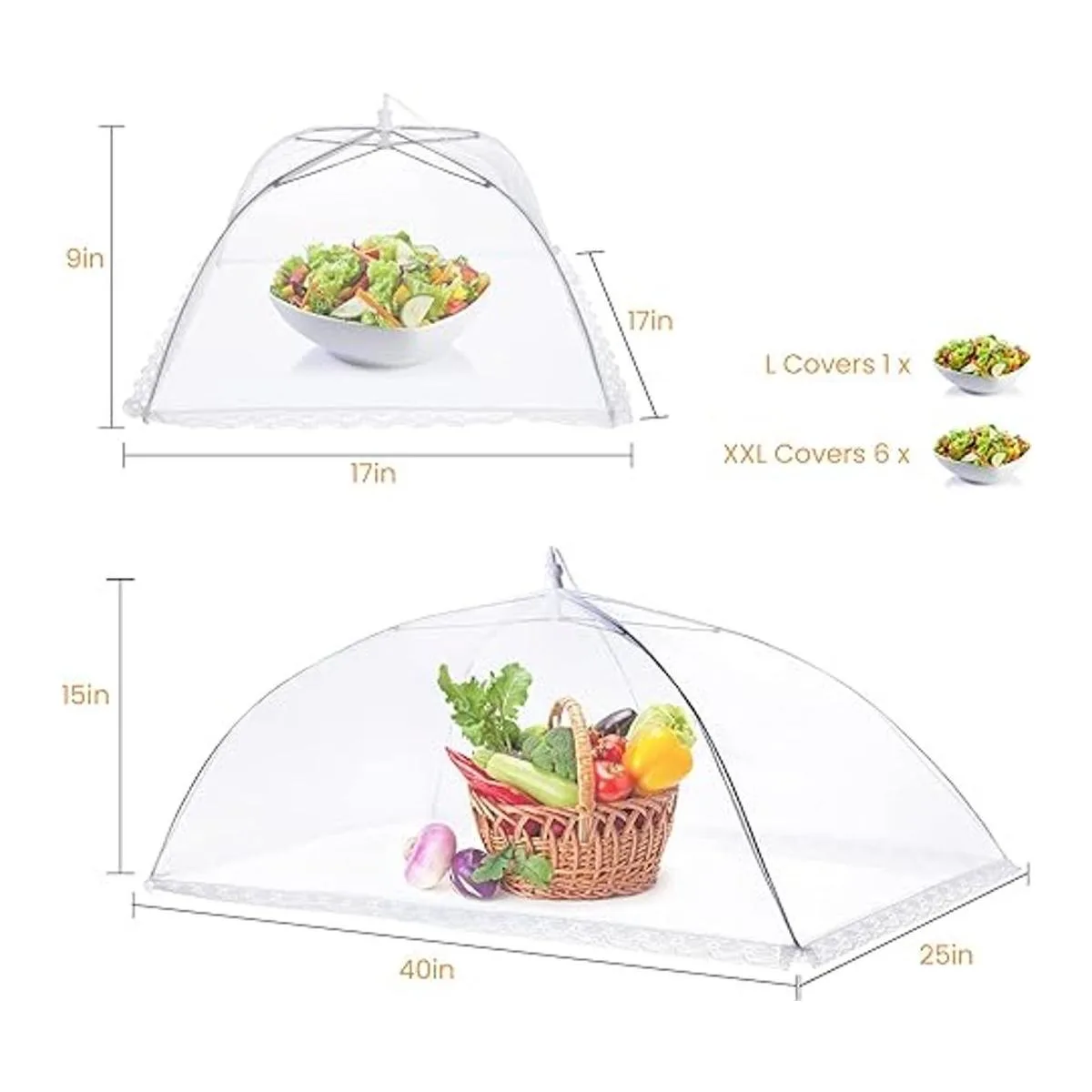 HOMKULA Fundas de alimentos para exteriores, paquete de 8, 2 extra grandes 40 x 24 pulgadas y 6 grandes 17 x 17 pulgadas de malla para exteriores, cubierta de alimentos para tienda de alimentos para suministros de fiesta de picnic, desplegable y plegable