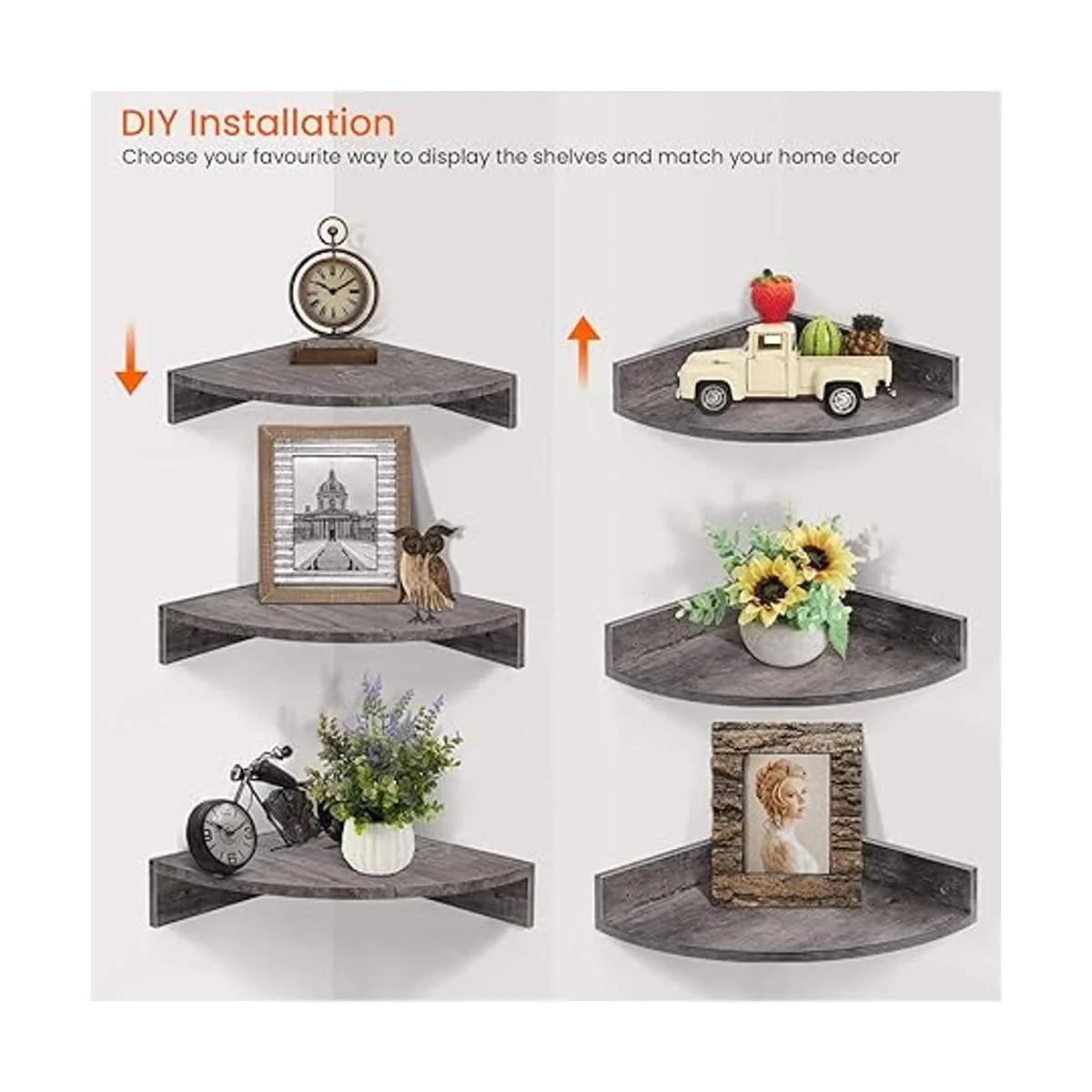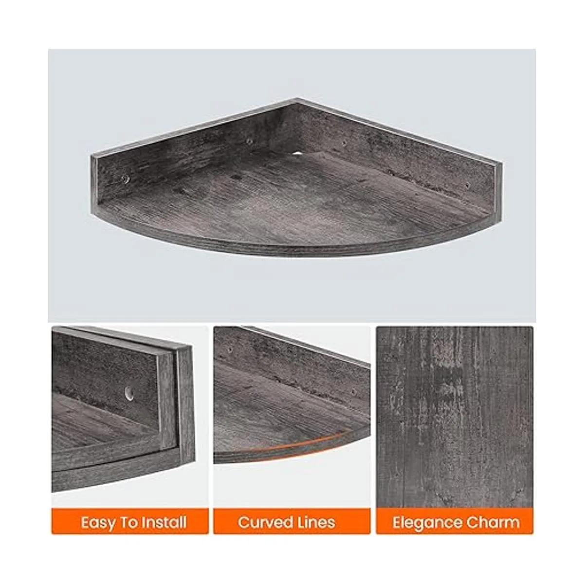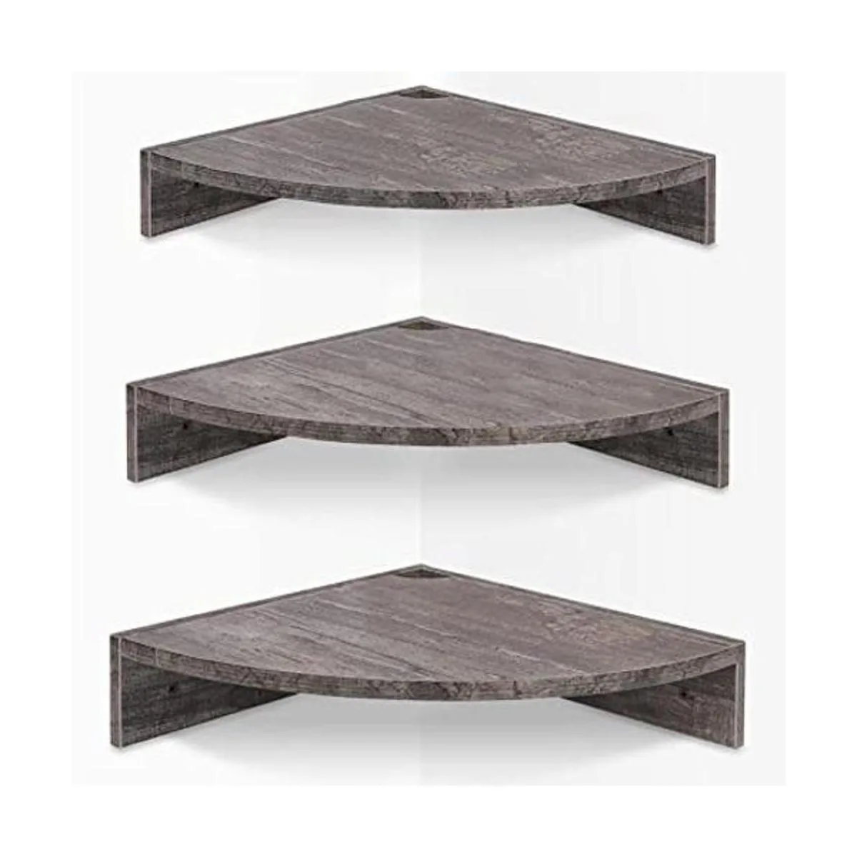 Homode Estantes flotantes de esquina, juego de 3 estantes de pared de esquina para almacenamiento y exhibición, organizador de estantes colgantes de madera de 3 niveles para caja de cables, para dormitorio, baño, cocina, gris rústico