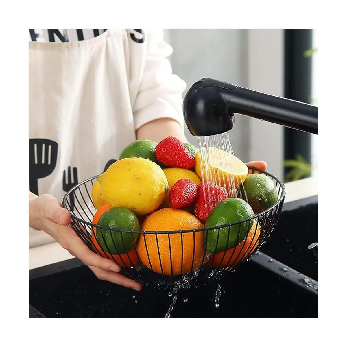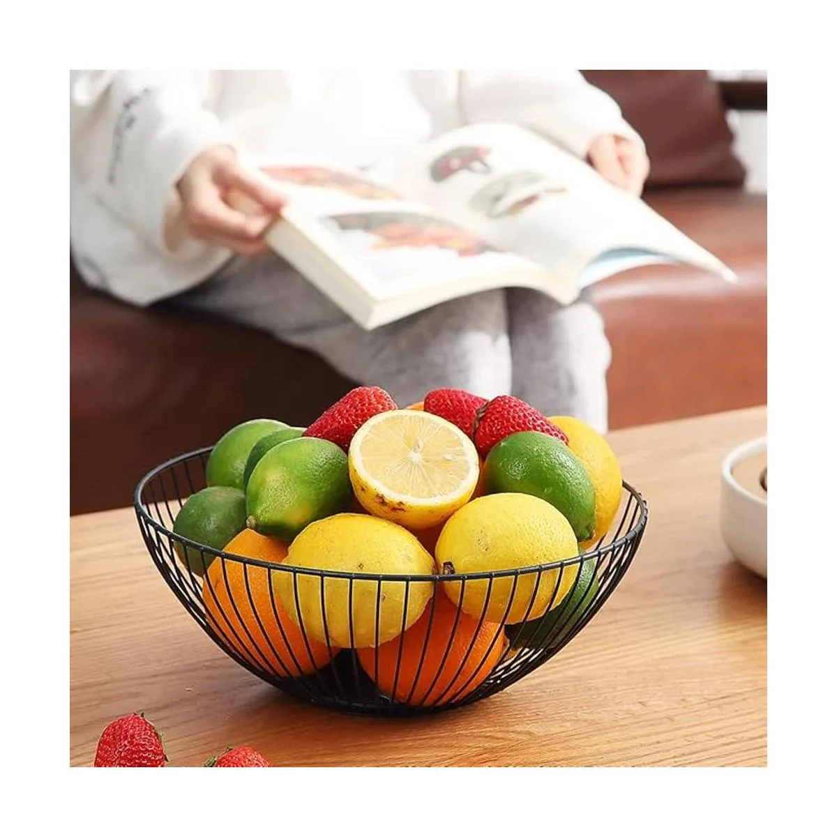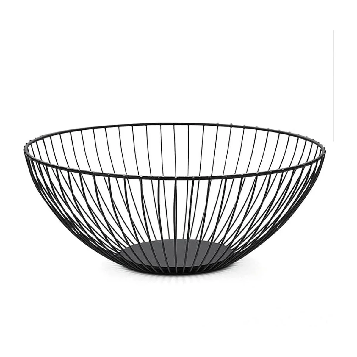 HOMQUEN Cesta de frutas, cuenco de frutas, cesta de frutas de alambre de metal para cocina, cuenco de frutas para mostrador de cocina, cesta para frutas, verduras, panes, aperitivos, utensilios de cocina redondo corto, negro