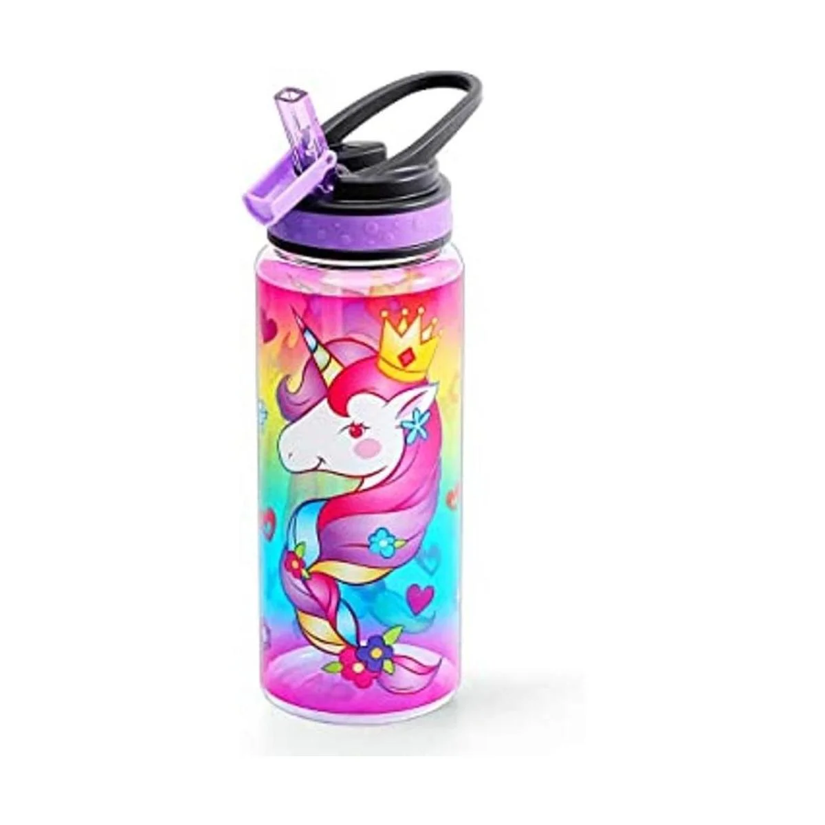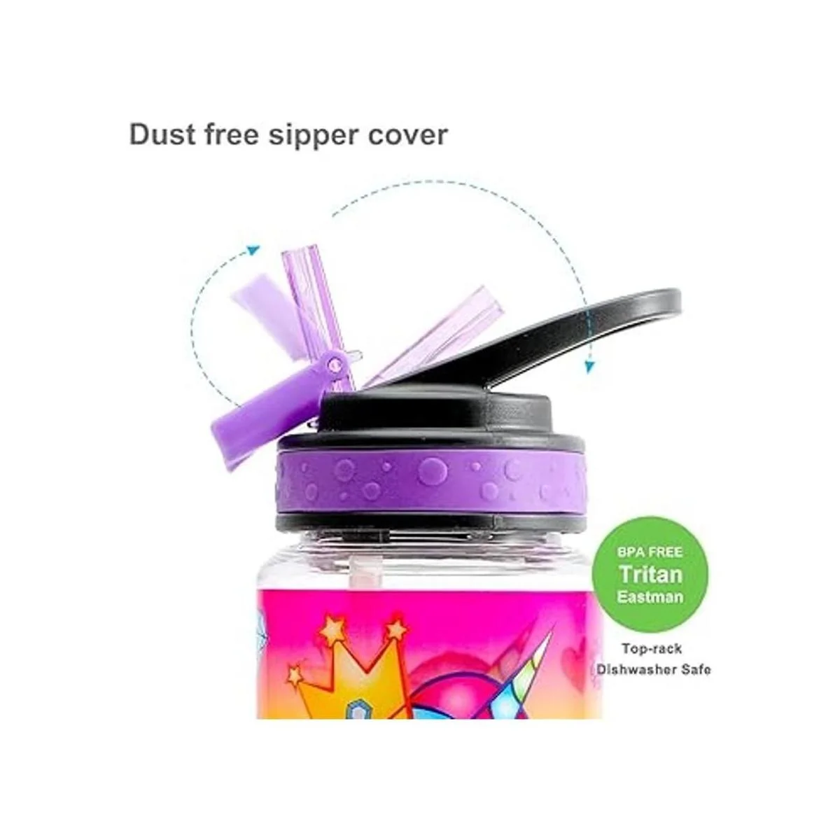 HomTune Bonita botella de agua con popote para niños en la escuela, sin BPA, Tritan y a prueba de fugas, fácil limpieza y asa de transporte, 23 onzas 23.0 fl oz, unicornio