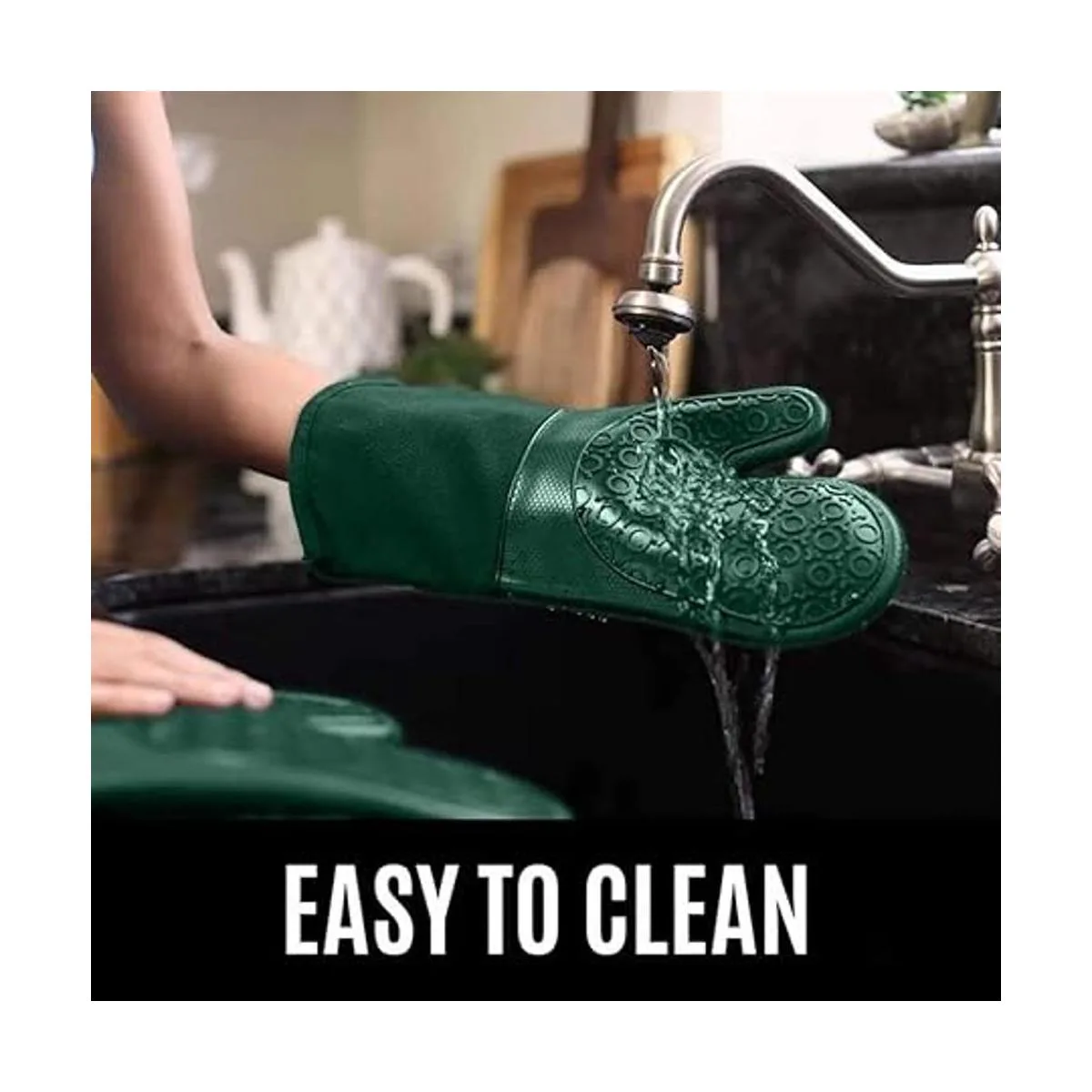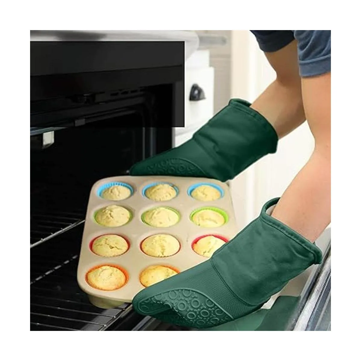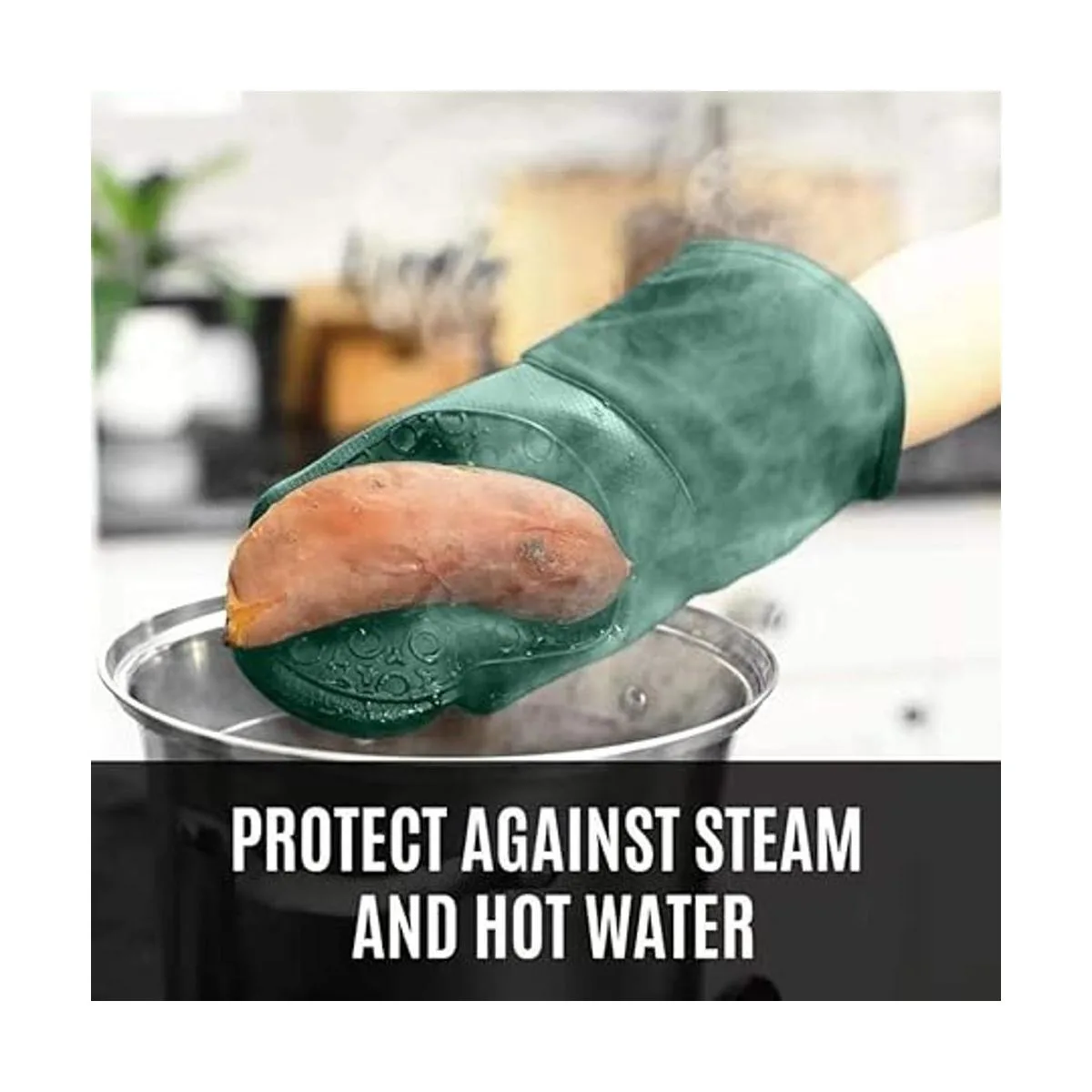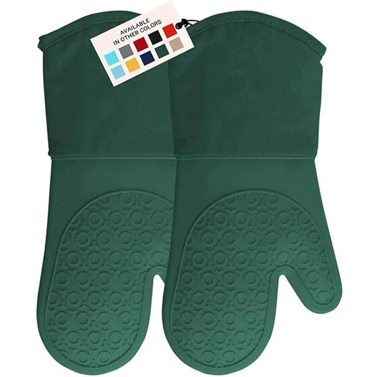 HOMWE Guantes de horno de silicona profesional extra largos, guantes de horno con forro acolchado, soportes resistentes al calor, guantes de horno flexibles, 1 par verde 13.7 pulgadas
