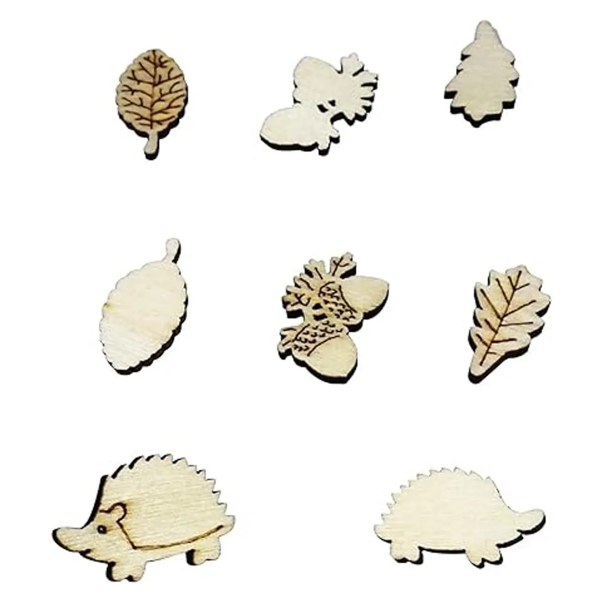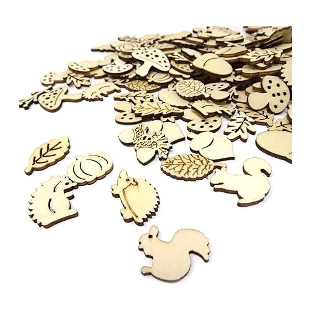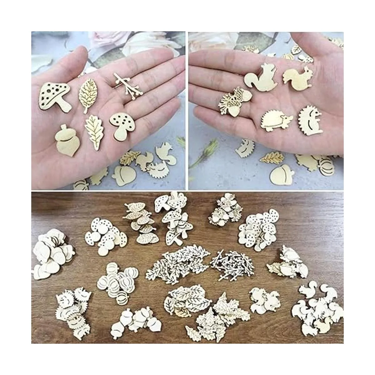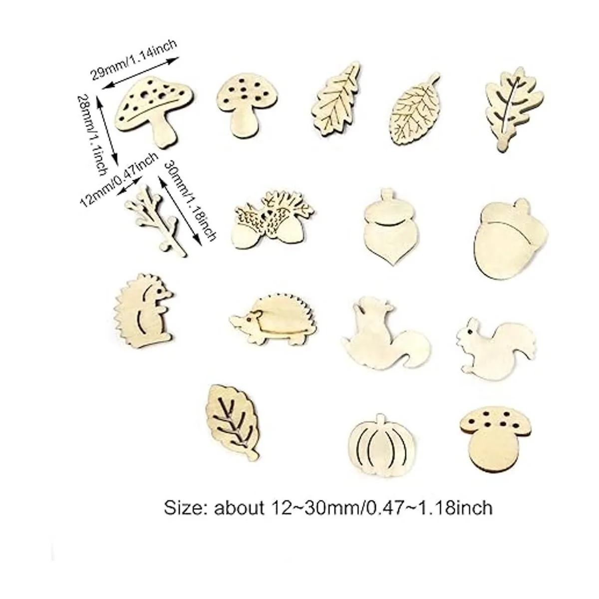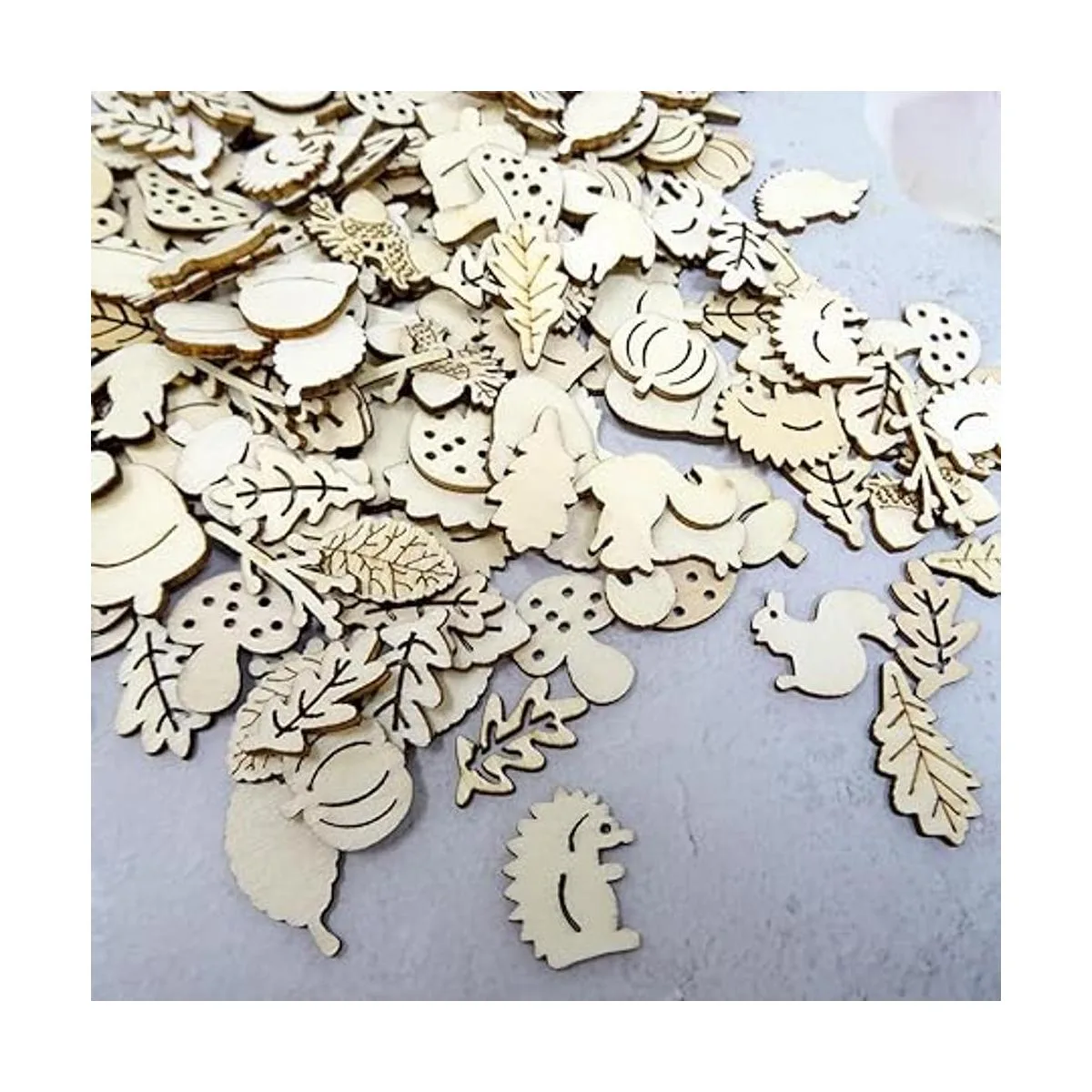 Honbay 200 piezas de hojas de erizo de ardilla sin terminar con forma de hongo en rodajas de madera de Acción de Gracias adornos de madera para decoración de otoño de árbol de otoño aleatorio