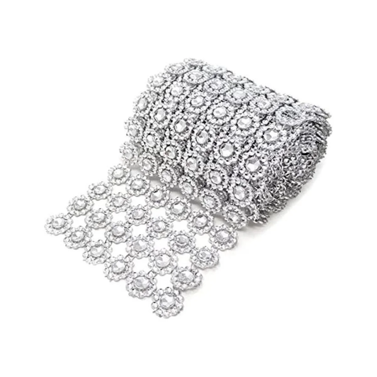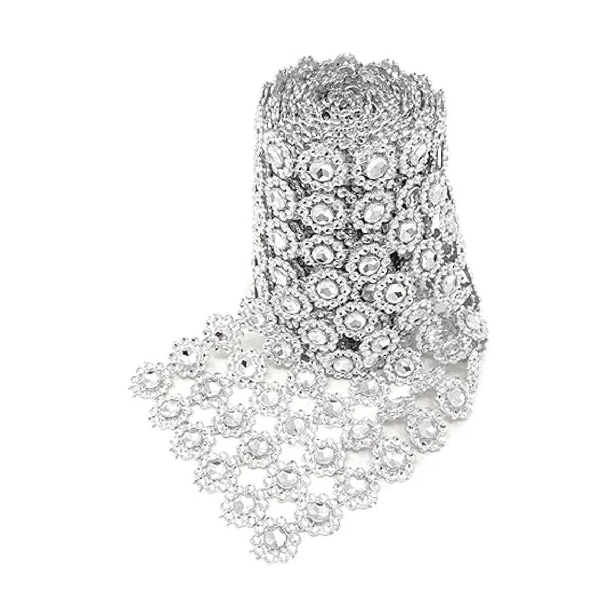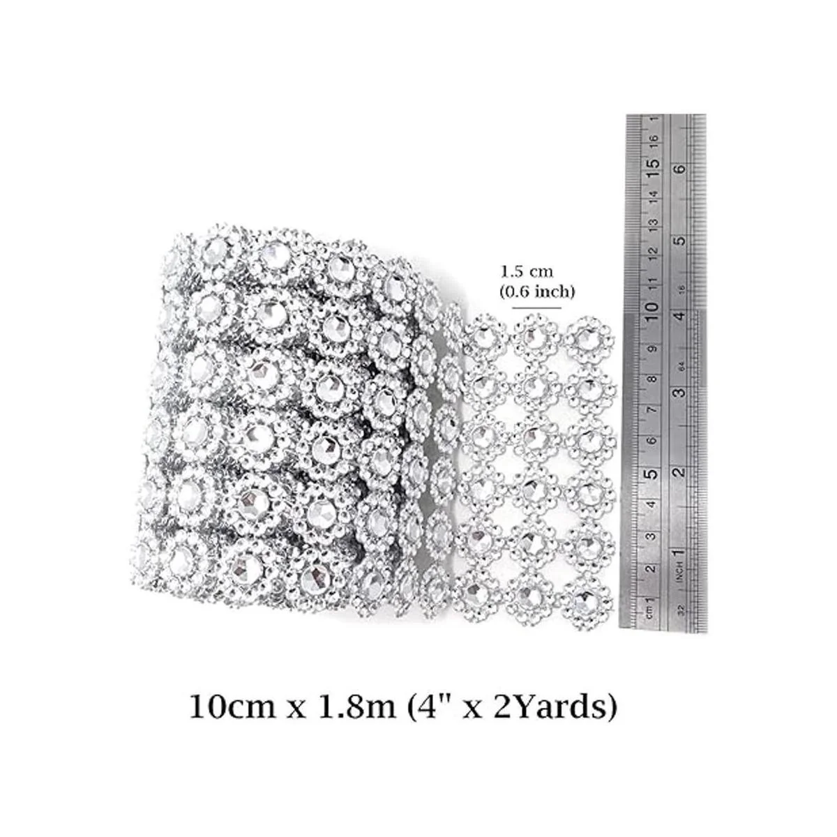 honbay 4 inch X 2 yards brillante de plata forma de flor de malla diamante vidrio de imitación Rhinestone malla cinta del rollo de envoltura para la boda, cumpleaños, baby shower, artes y manualidades, etc.