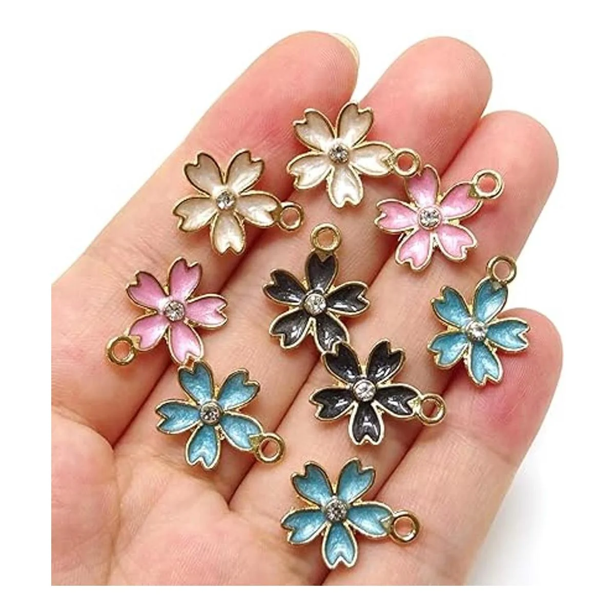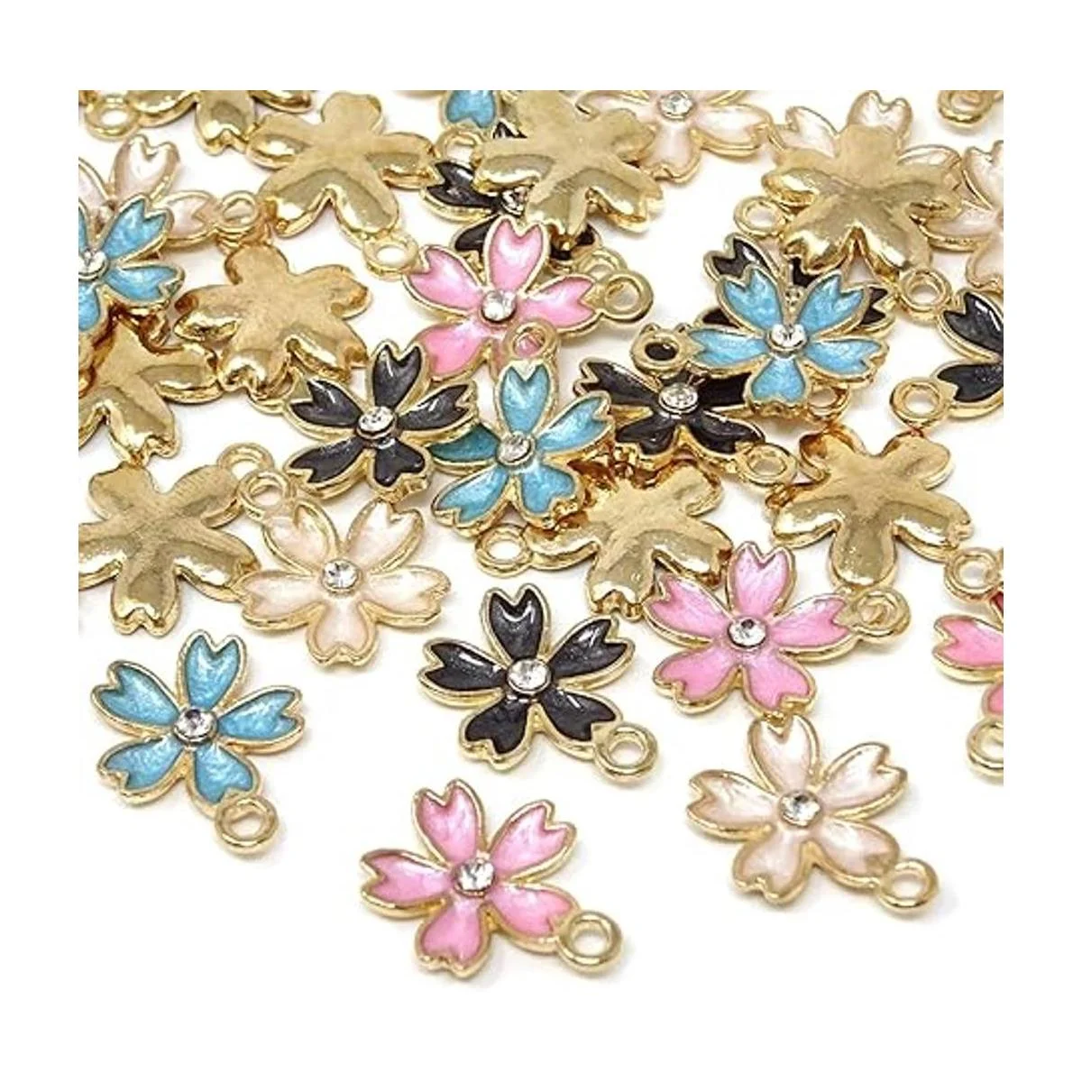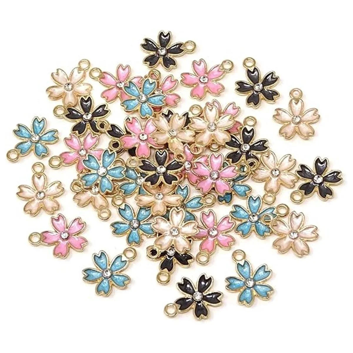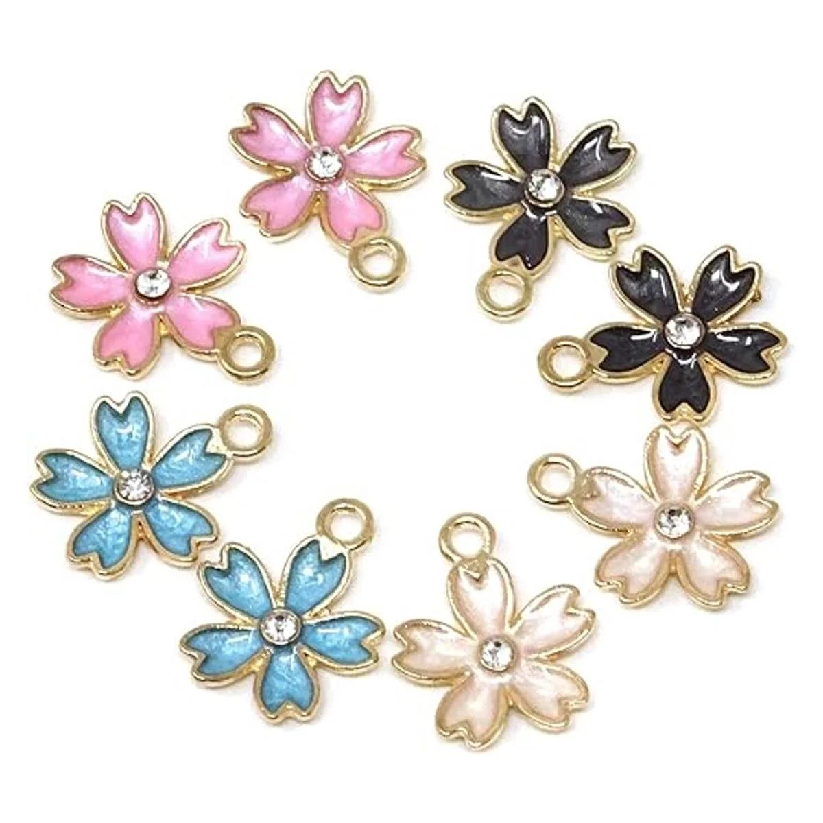 Honbay 40pcs esmalte flor de cerezo colgante colgante para joyería o manualidades DIY