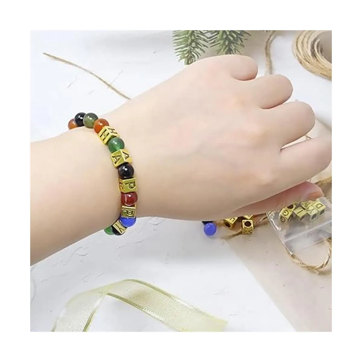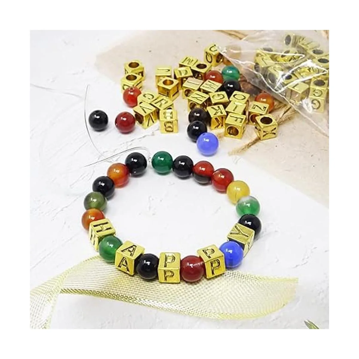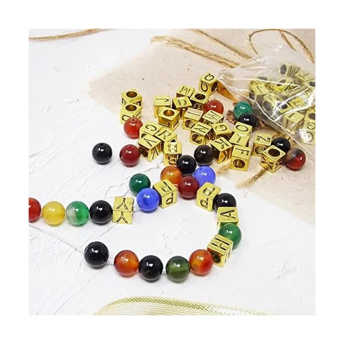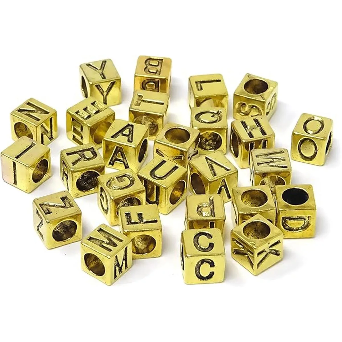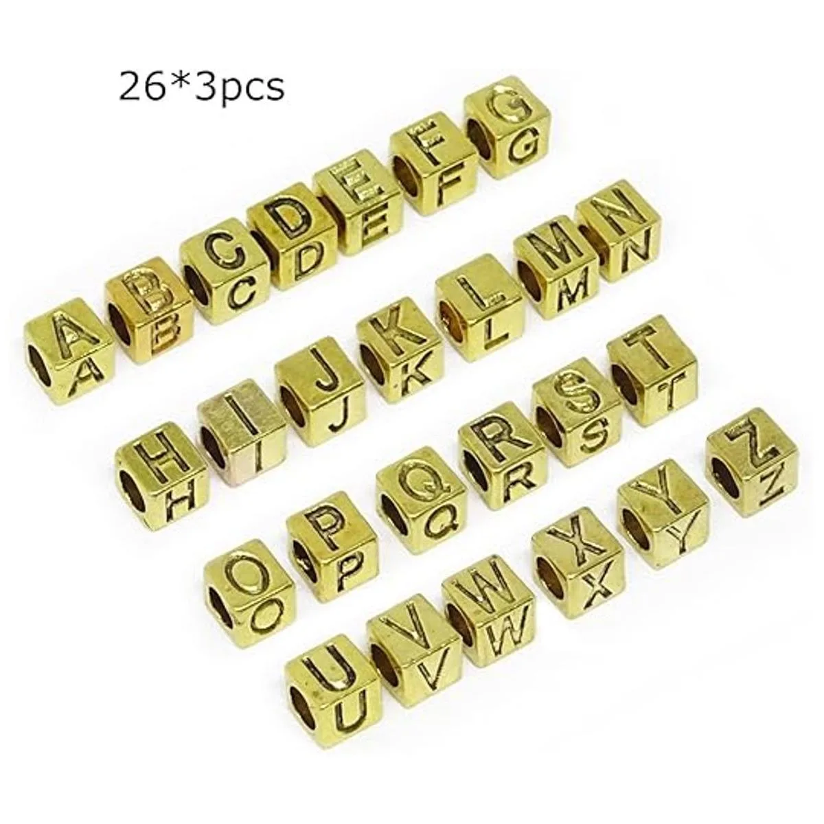 Honbay 78 cuentas de metal de 0.276 in, cuentas de alfabeto AZ, cuentas espaciadoras, cuentas de agujero grande para manualidades y fabricación de joyas oro antiguo