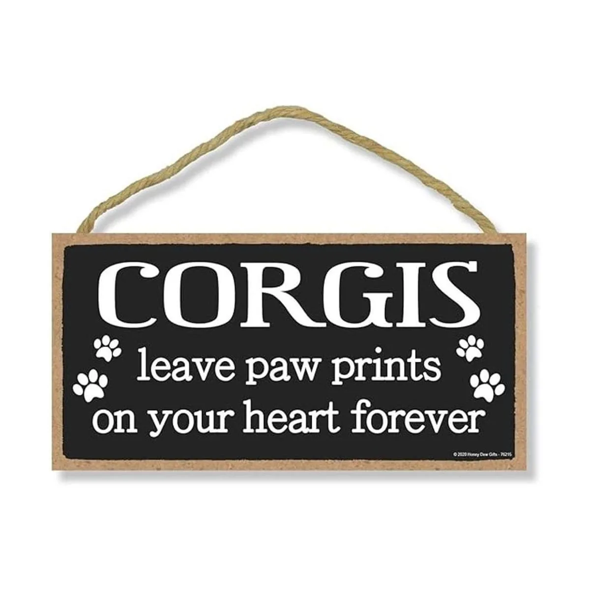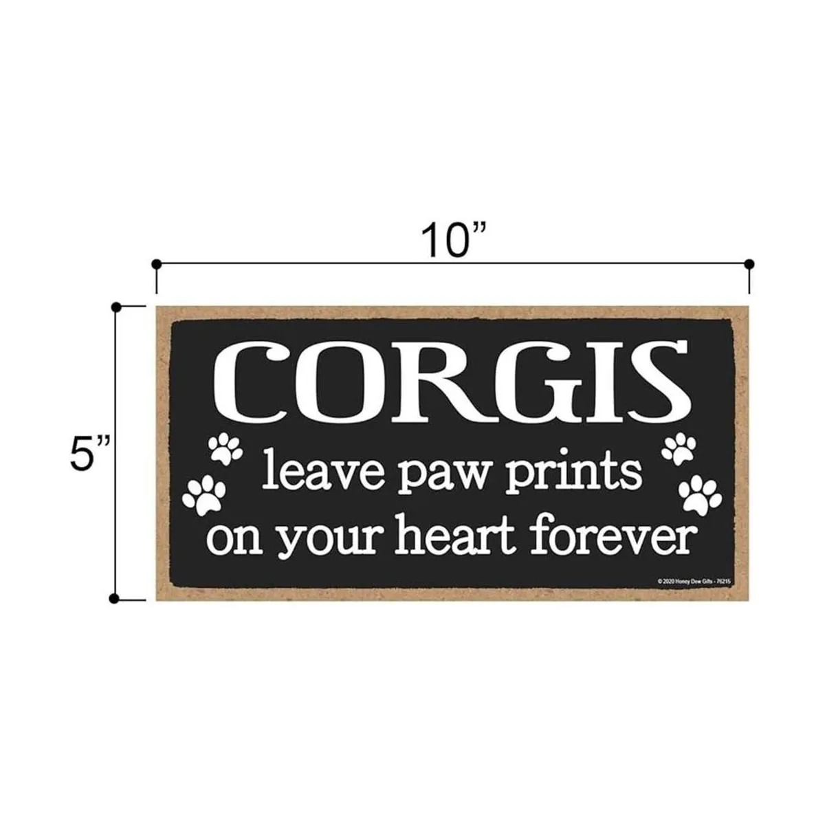 Honey Dew Gifts Corgis Leave Paw Prints Cartel decorativo de madera para decoración del hogar de mascotas, 5.0 x 10.0 in