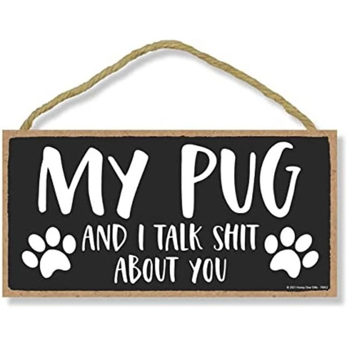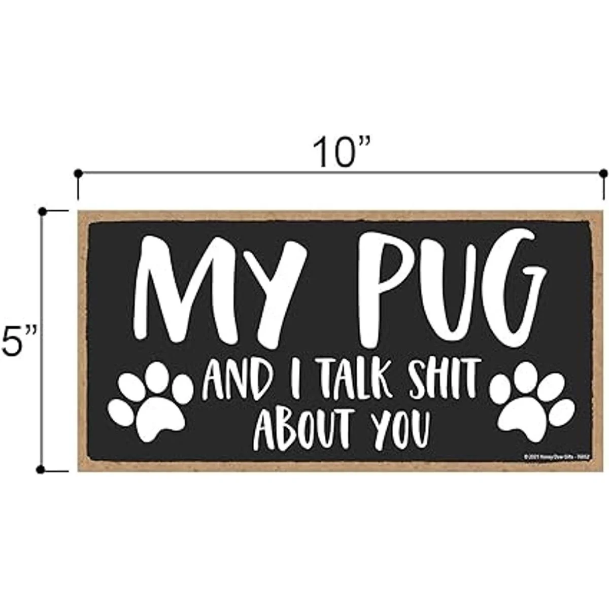 Honey Dew Gifts, My Pug and I Talk Shit About You, 10 x 5 pulgadas, letrero de perro pug, decoración de amante de los perros, ideas de regalo de pug, decoración de mascotas para el hogar, letrero de pug, regalos de pug