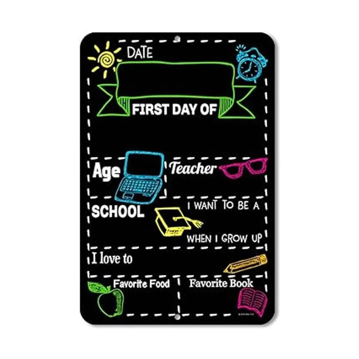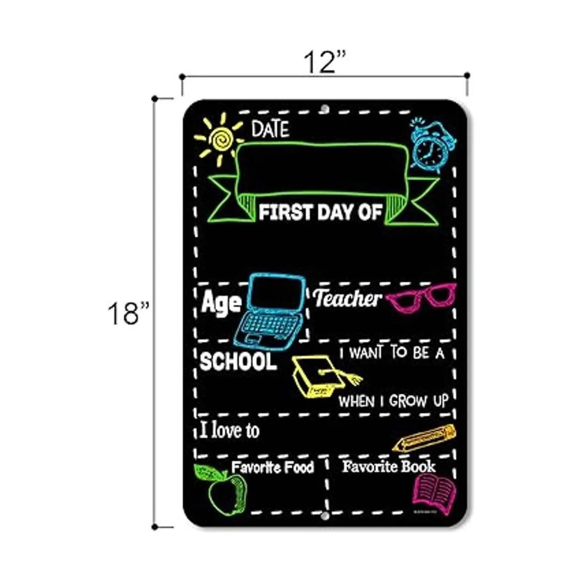 Honey Dew Gifts Pizarra estilo escuela, tablero de utilería de fotos, jardín de infantes, preescolar, letrero de lata reutilizable primer día HDG1112, 12 x 18