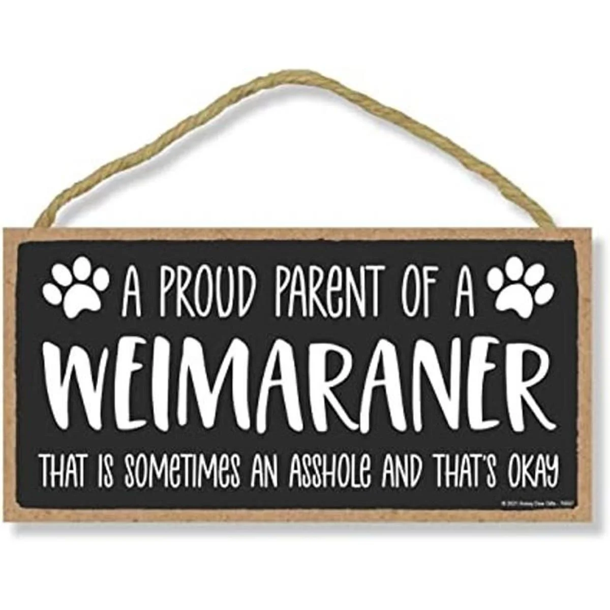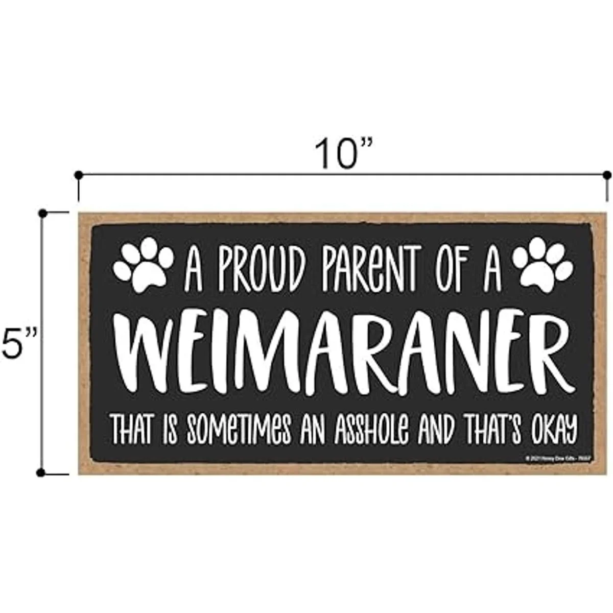 Honey Dew Gifts, Proud Parent of a Weimaraner that is Sometimes an Asshole, divertida decoración para colgar en la pared, letreros decorativos de madera para el hogar para amantes de los perros, mascotas, 5 x 10 pulgadas