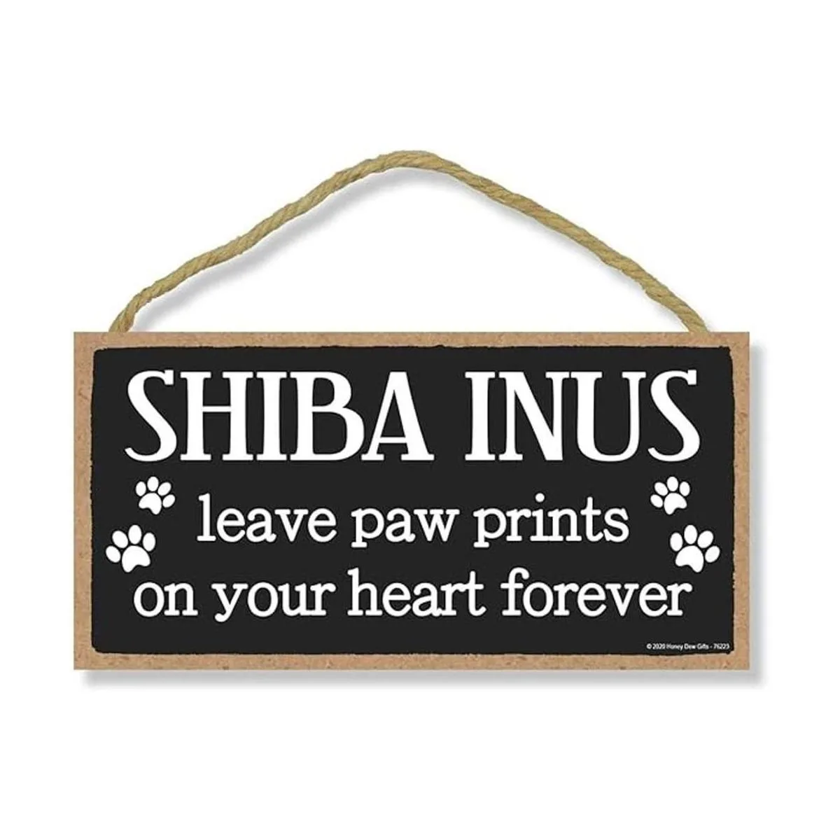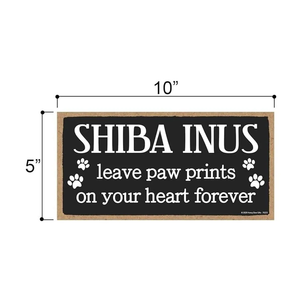 Honey Dew Gifts Shiba Inus Leave Paw Prints Cartel decorativo de madera para decoración del hogar de mascotas, 5.0 x 10.0 in