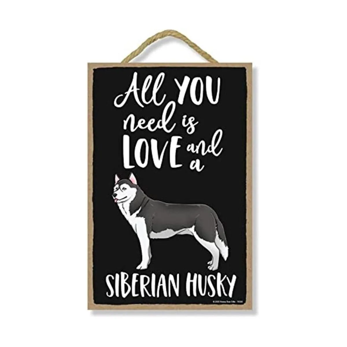 Honey Rocío Gifts, All You Need is Love and a Siberian Husky, divertida decoración del hogar de madera para los amantes de los perros y mascotas, colgante decorativo de pared, 7 pulgadas por 10.5 pulgadas