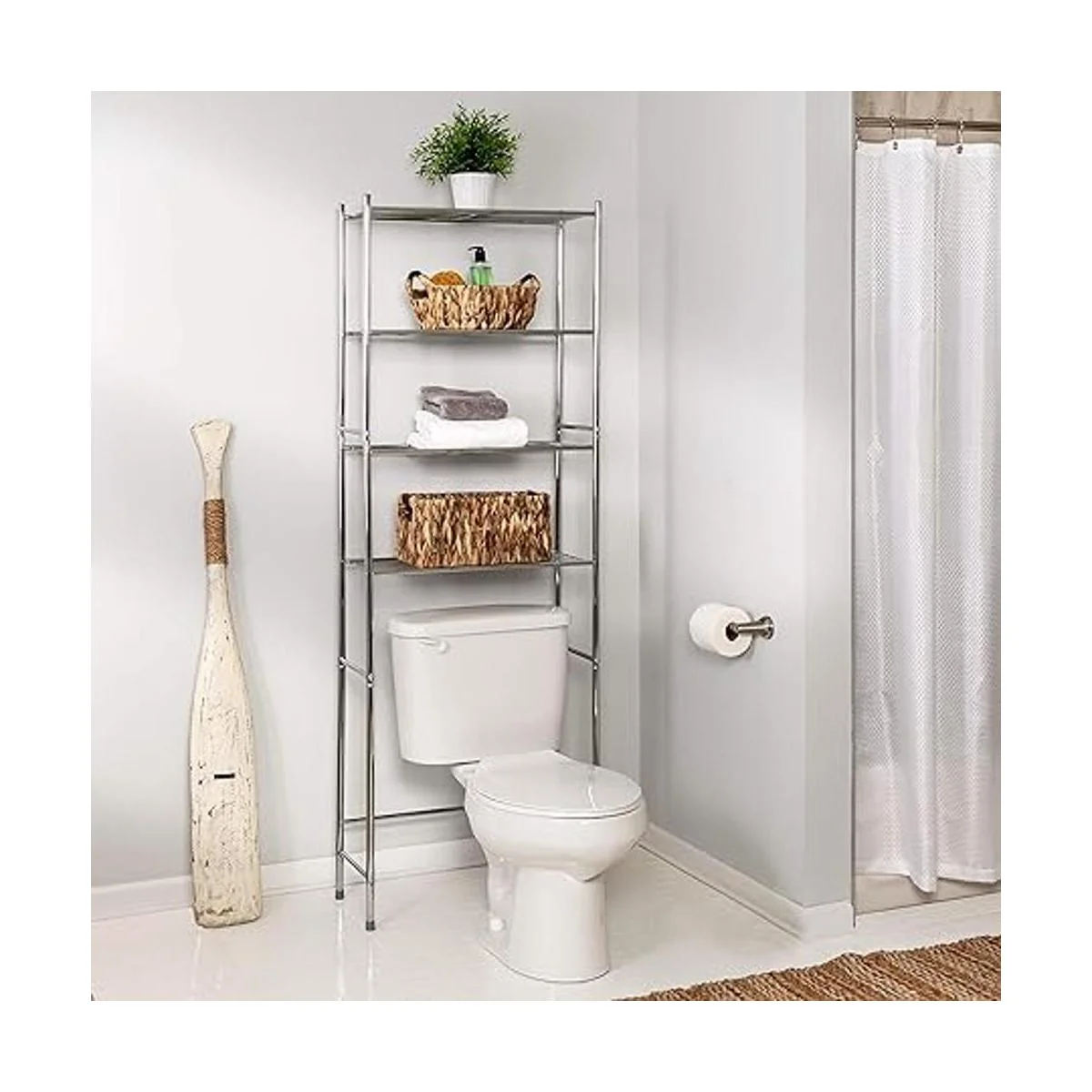 Crea espacio de almacenamiento vertical, sobre inodoros u otros muebles