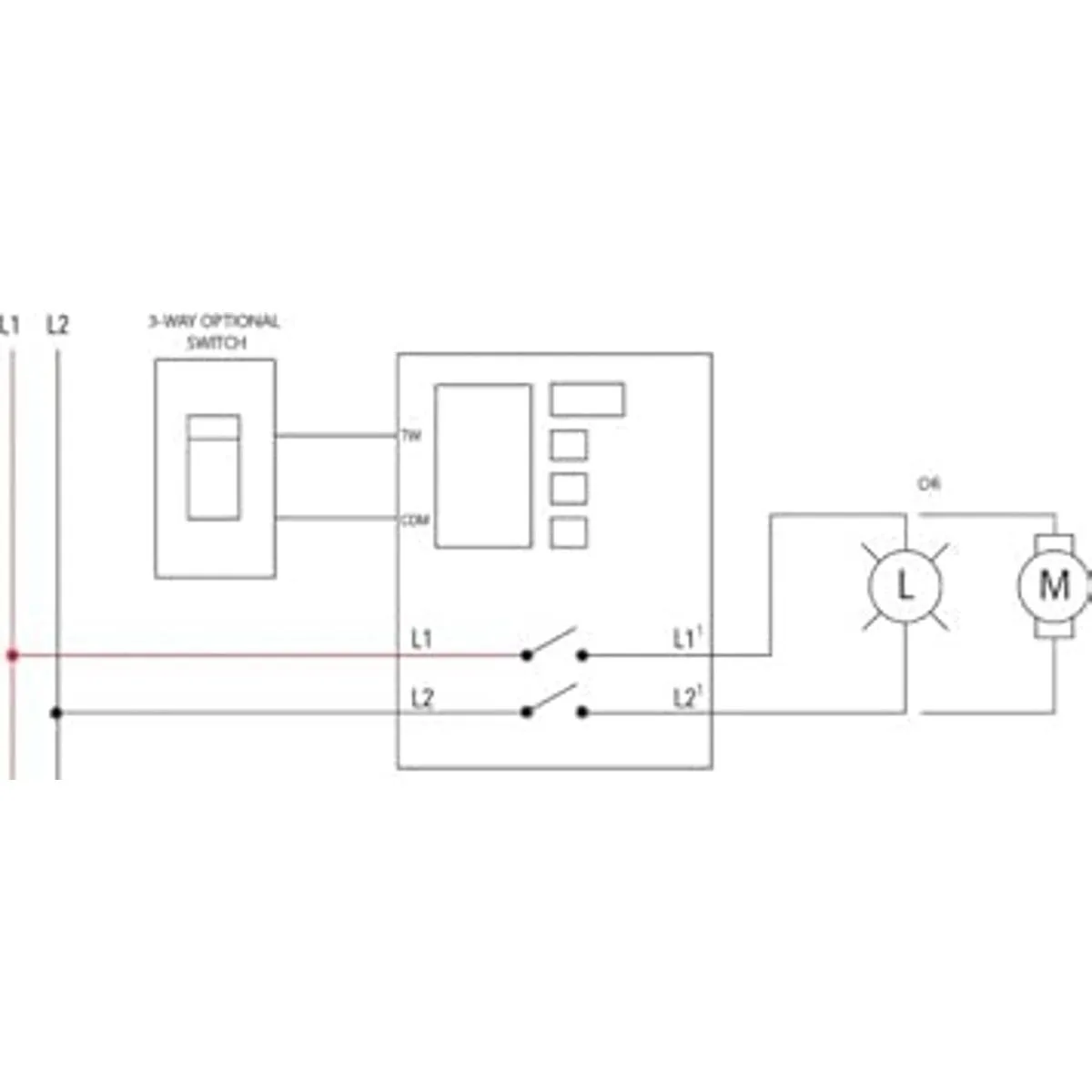Entrada de 3 vías para un interruptor remoto. Conexión: Terminales para cable No.14 a No.10 AWG, compatible con múltiples interruptores 3 vías, 1.5 HP 120 voltios 30 amperios resistivo, 10 amperios balasto, 2 HP 240 voltios 30 amperios resistivo, 10 amperios balasto