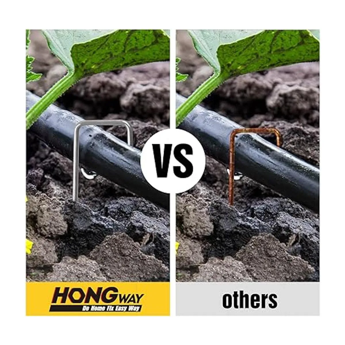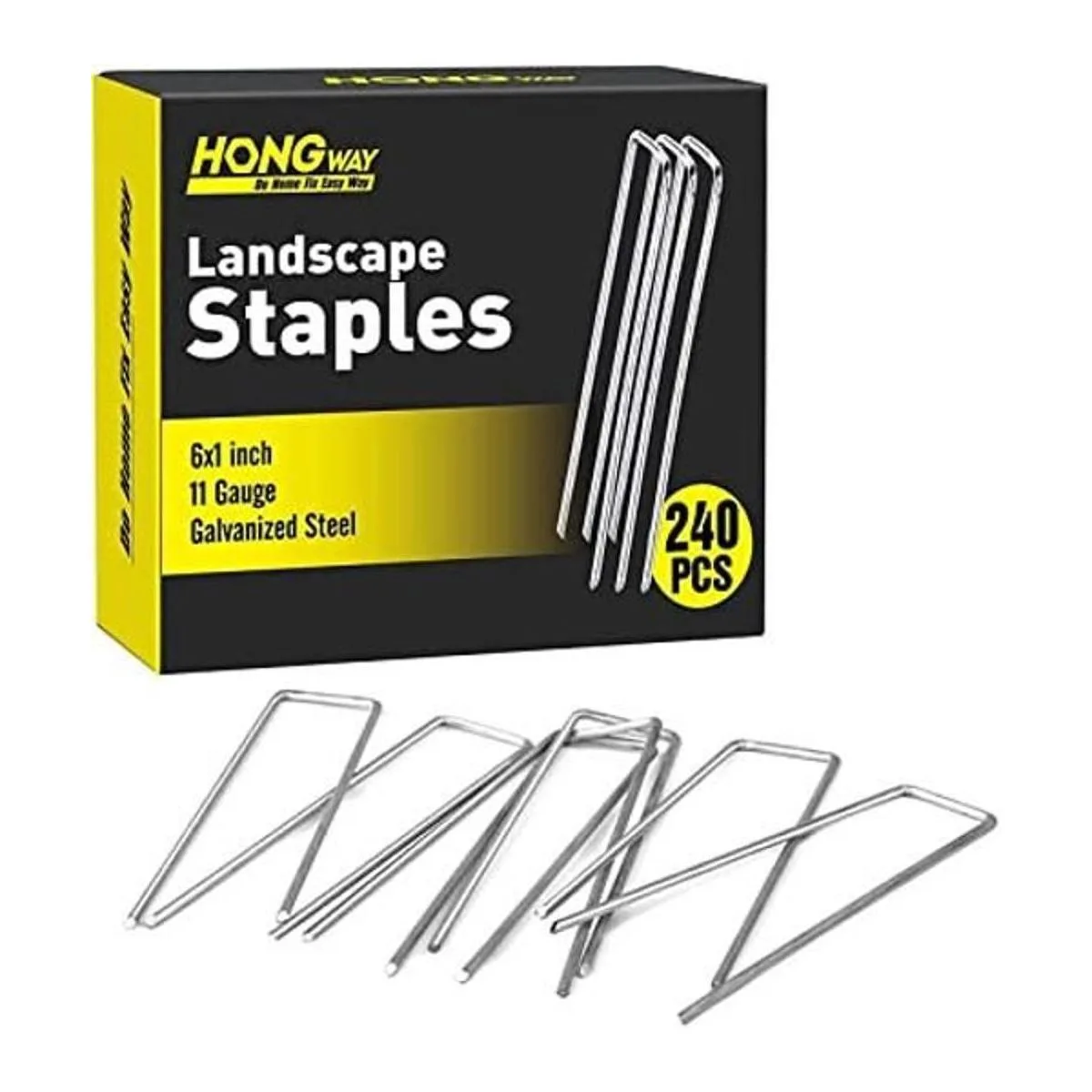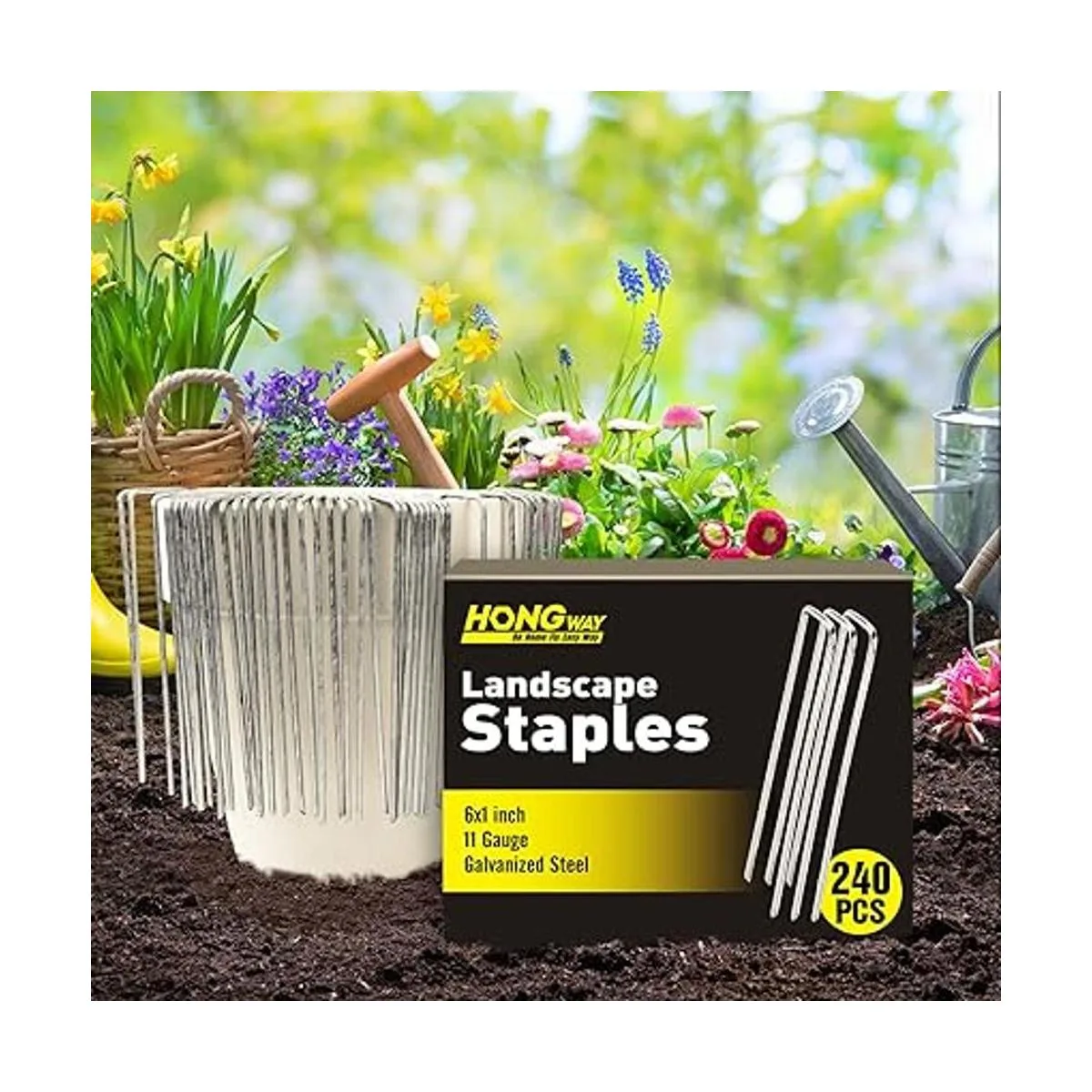 HongWay 240 grapas de paisaje, estacas de tela de calibre 11 de 6 pulgadas, grapas de jardín galvanizadas y pasadores en forma de U para paisajismo de tela, barrera de malezas, tubos de riego