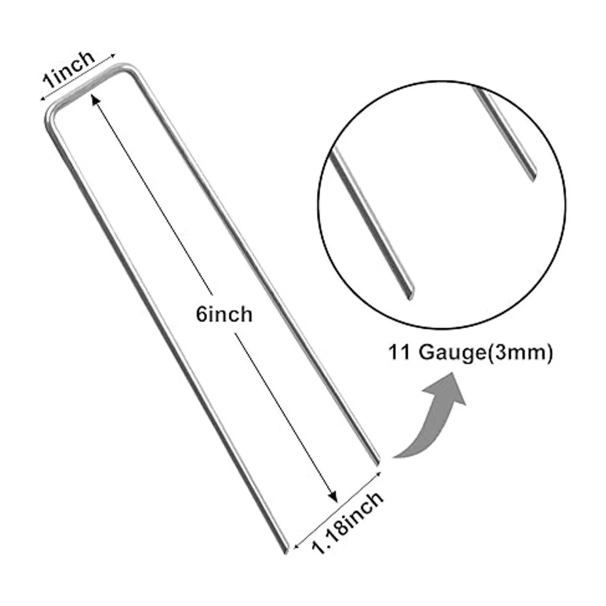 Tamaño: 6 pulgadas de largo, 1 pulgada de ancho, calibre 11 diámetro del alambre 0.118 in. El tamaño es perfecto para tus paisajes al aire libre, patio y proyectos de hogar. El medidor permite que nuestras estacas sean más fuertes y duraderas.