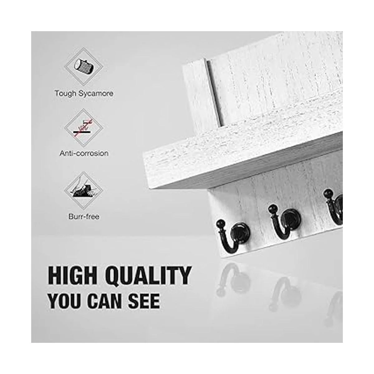 Perfecto para tu estilo de hogar: Este magnífico llavero rústico está hecho de madera de sicomoro, con un estilo de granja obvio, e integra con la decoración de tu hogar. Nuestro soporte para llaves de pared es una decoración perfecta de entrada y apenas notable.