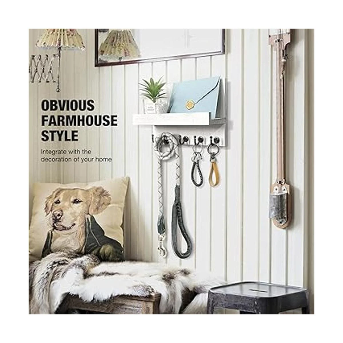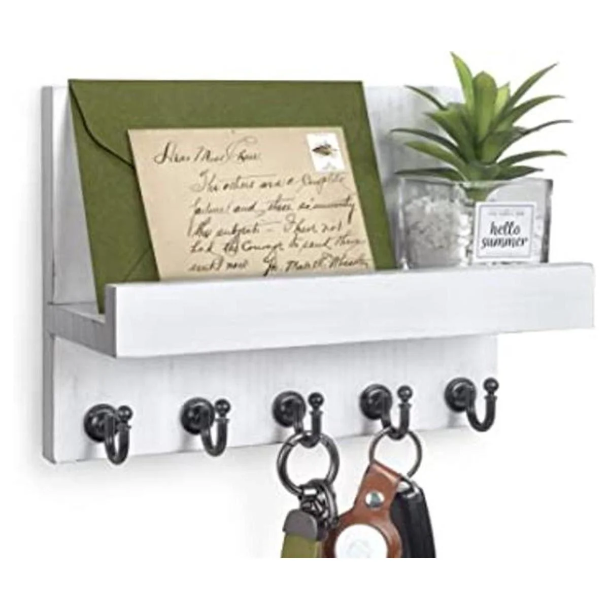 HONJIN Soporte de pared para llaves Organizador de correo de fácil instalación para colgar en la pared de casa de campo para decoración de cocina y entrada con 5 ganchos resistentes para llaves